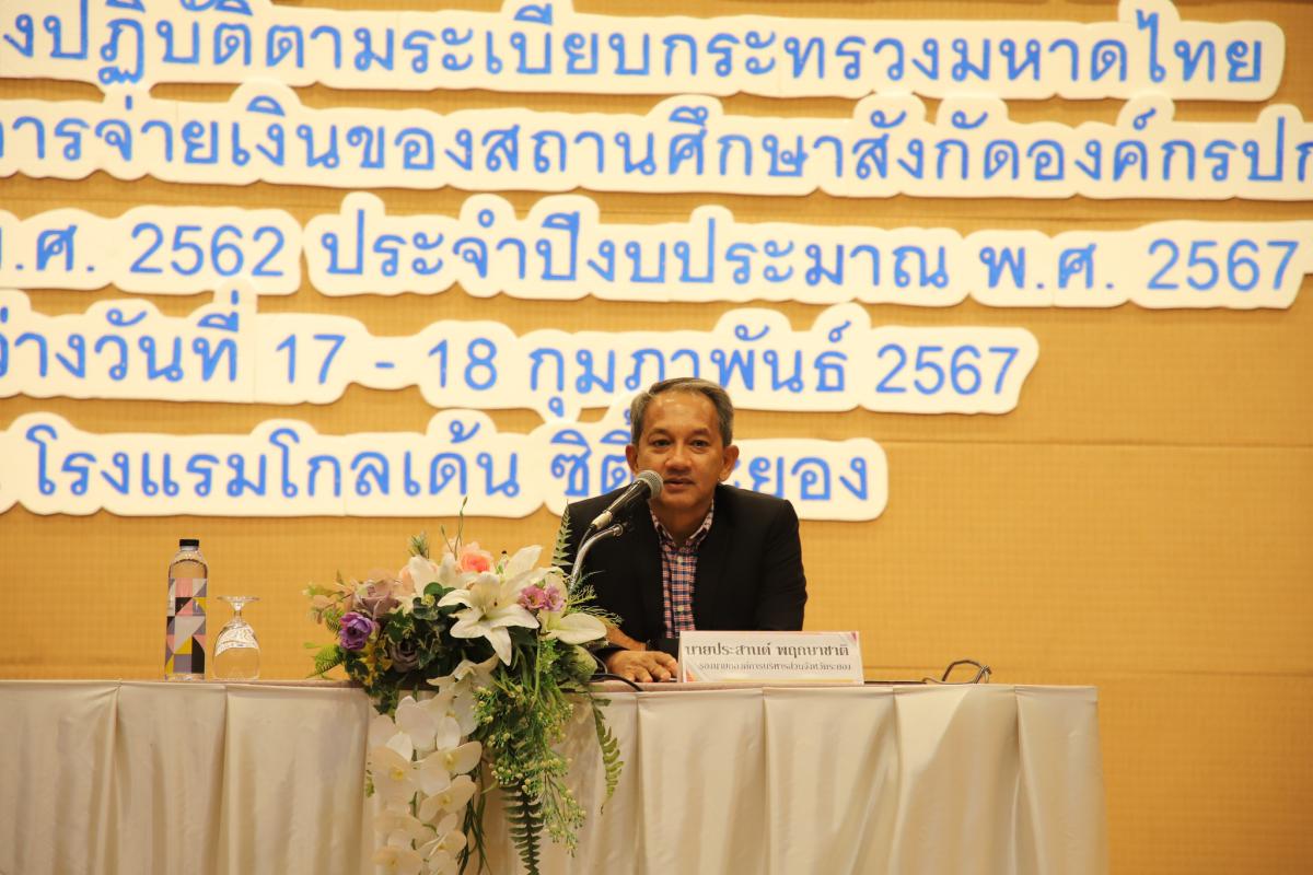 พิธีเปิดโครงการฝึกอบรมพัฒนาศักยภาพบุคลากรเพื่อเพิ่มประสิทธิภาพในการปฏิบัติงาน “หลักสูตร การจัดทำแผนพัฒนาการศึกษาและแนวทางปฏิบัติตามระเบียบกระทรวงมหาดไทยว่าด้วยรายได้และการจ่ายเงินของสถานศึกษาสังกัดองค์กรปกครองส่วนท้องถิ่น พ.ศ. 2562 ประจำปีงบประมาณ พ.ศ. 2567”