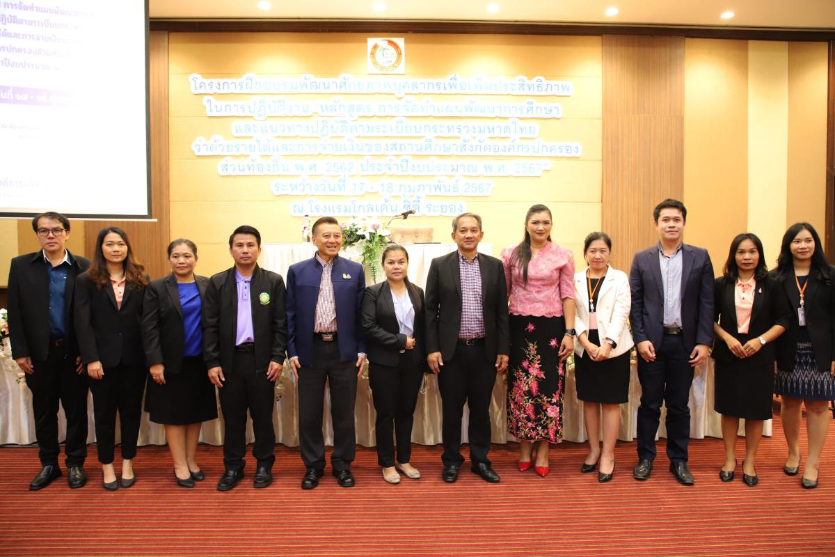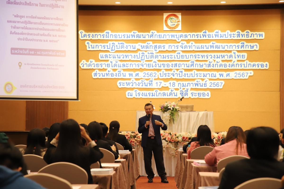 วันที่ 17 กุมภาพันธ์ 2567 เวลา 09.00 น. นายประสานต์ พฤกษาชาติ รองนายกองค์การบริหารส่วนจังหวัดระยอง เป็นประธานเปิดโครงการฝึกอบรมพัฒนาศักยภาพบุคลากรเพื่อเพิ่มประสิทธิภาพในการปฏิบัติงาน “หลักสูตร การจัดทำแผนพัฒนาการศึกษาและแนวทางปฏิบัติตามระเบียบกระทรวงมหาดไทยว่าด้วยรายได้และการจ่ายเงินของสถานศึกษาสังกัดองค์กรปกครองส่วนท้องถิ่น พ.ศ. 2562 ประจำปีงบประมาณ พ.ศ. 2567” พร้อมด้วยนายมนตรี ชนะชัยวิบูลย์วัฒน์ ที่ปรึกษานายกองค์การบริหารส่วนจังหวัดระยอง หัวหน้าส่วนราชการ ข้าราชการ และผู้ที่เกี่ยวข้องเข้าร่วมโครงการฯอย่างพร้อมเพรียงกัน โดยมีวัตถุประสงค์เพื่อเพิ่มพูนความรู้และสร้างความเข้าใจเกี่ยวกับการจัดทำแผนพัฒนาการศึกษา เทคนิคและวิธีการเขียนโครงการ การใช้จ่ายเงินรายได้ของสถานศึกษา และระเบียบที่เกี่ยวข้องได้อย่างถูกต้องตามระเบียบกฎหมายที่กำหนด ซึ่งได้รับเกียรติจากนางสาวพีระนุช พิมพ์บุตร วิทยากรเครือข่ายการจัดแผนและงบประมาณทางการศึกษาขององค์กรปกครองส่วนท้องถิ่น กรมส่งเสริมการปกครองส่วนท้องถิ่น กระทรวงมหาดไทย เป็นวิทยากรบรรยายให้ความรู้ในวันนี้ ณ โรงแรมโกลเด้น ซิตี้ ระยอง