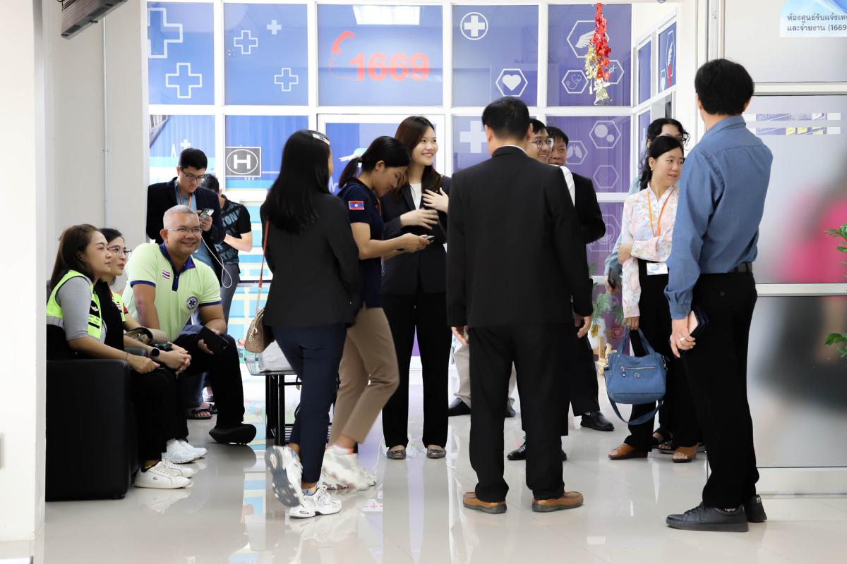 สถาบันการแพทย์ฉุกเฉินแห่งชาติ ได้ร่วมมือกับกรมความร่วมมือระหว่างประเทศ กระทรวงการต่างประเทศ และองค์การความร่วมมือระหว่างประเทศแห่งญี่ปุ่น (Japan International Cooperation Agency) ภายใต้โครงการ Third Country Third Country Training Programme กำหนด ให้มีการจัดฝึกอบรมหลักสูตร "Emergency Medical Services (EMS) Leadership and Management" ให้แก่ กลุ่มประเทศ CLMV (Cambodia Laos Myanmar Vietnam) โดยมีวัตถุประสงค์เพื่อให้เกิดการพัฒนาทางด้านการแพทย์ฉุกเฉินในกลุ่มประเทศ CLMV และเกิดการบูรณาการ ความร่วมมือระหว่างหน่วยงานต่างๆ ที่เกี่ยวข้องอย่างเป็นระบบในการบริหารจัดการระบบการแพทย์ฉุกเฉิน ในกลุ่มประเทศ CLMV โดยพิจารณาแล้วเห็นว่าองค์การบริหารส่วนจังหวัดระยอง มีศักยภาพในการเป็น แหล่งเรียนรู้ให้แก่ผู้แทนจากกลุ่มประเทศดังกล่าวได้เป็นอย่างดี จึงขอความอนุเคราะห์เข้าเยี่ยมชมและศึกษาดูงาน พร้อมวิทยากรบรรยายในหัวข้อ “การดำเนินงานและบริหารจัดการระบบการแพทย์ฉุกเฉินขององค์การบริหาร ส่วนจังหวัดระยอง” พร้อมเยี่ยมชมการดำเนินงานในด้านต่างๆ ขององค์การบริหารส่วนจังหวัดระยอง มีคณะผู้เข้าร่วมการฝึกอบรมที่เป็น ผู้แทนจากกลุ่มประเทศข้างต้น ผู้บริหารและบุคลากรของสถาบันการแพทย์ฉุกเฉินแห่งชาติ รวมจำนวนทั้งสิ้น ๒๖ ท่าน