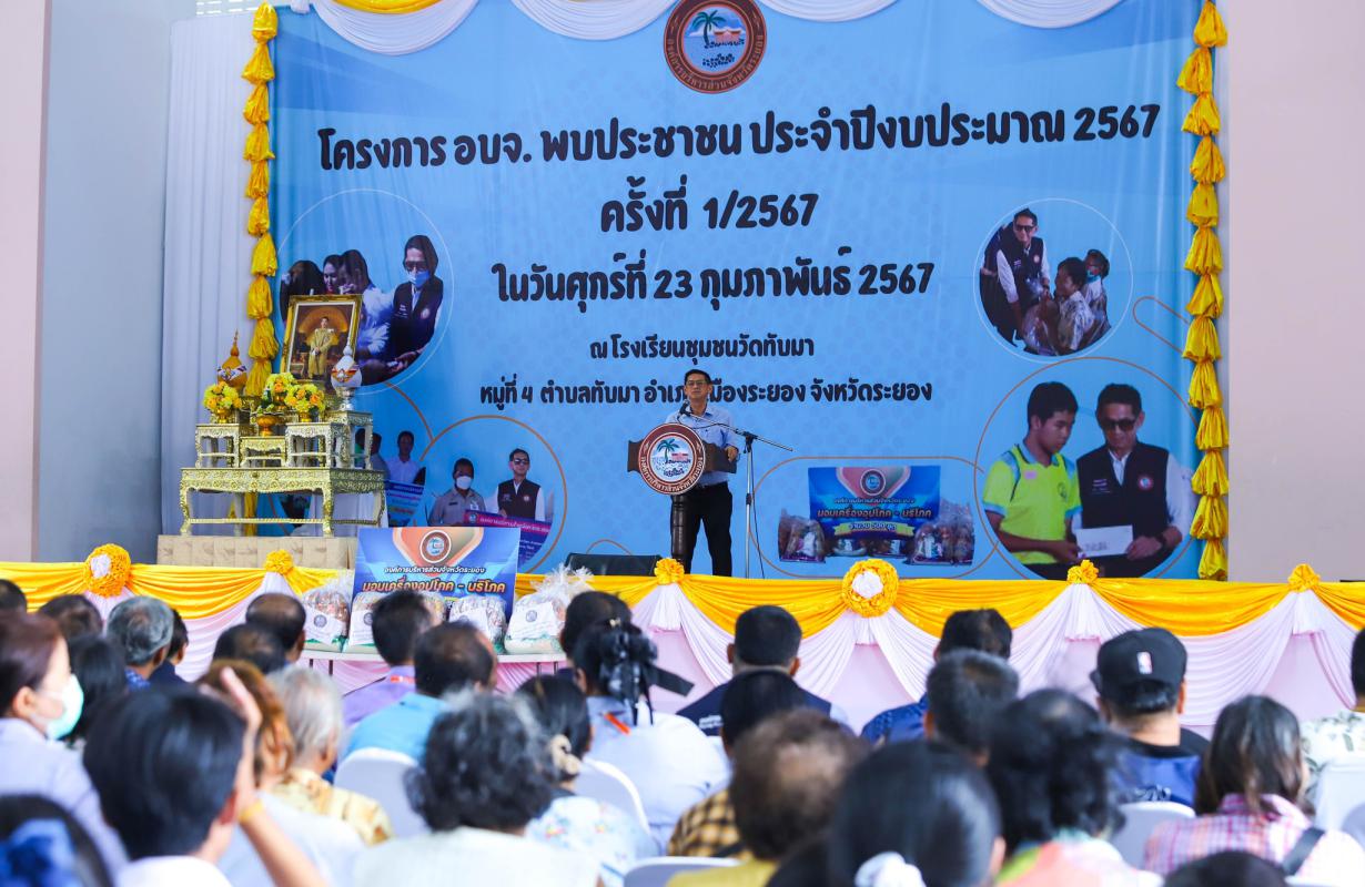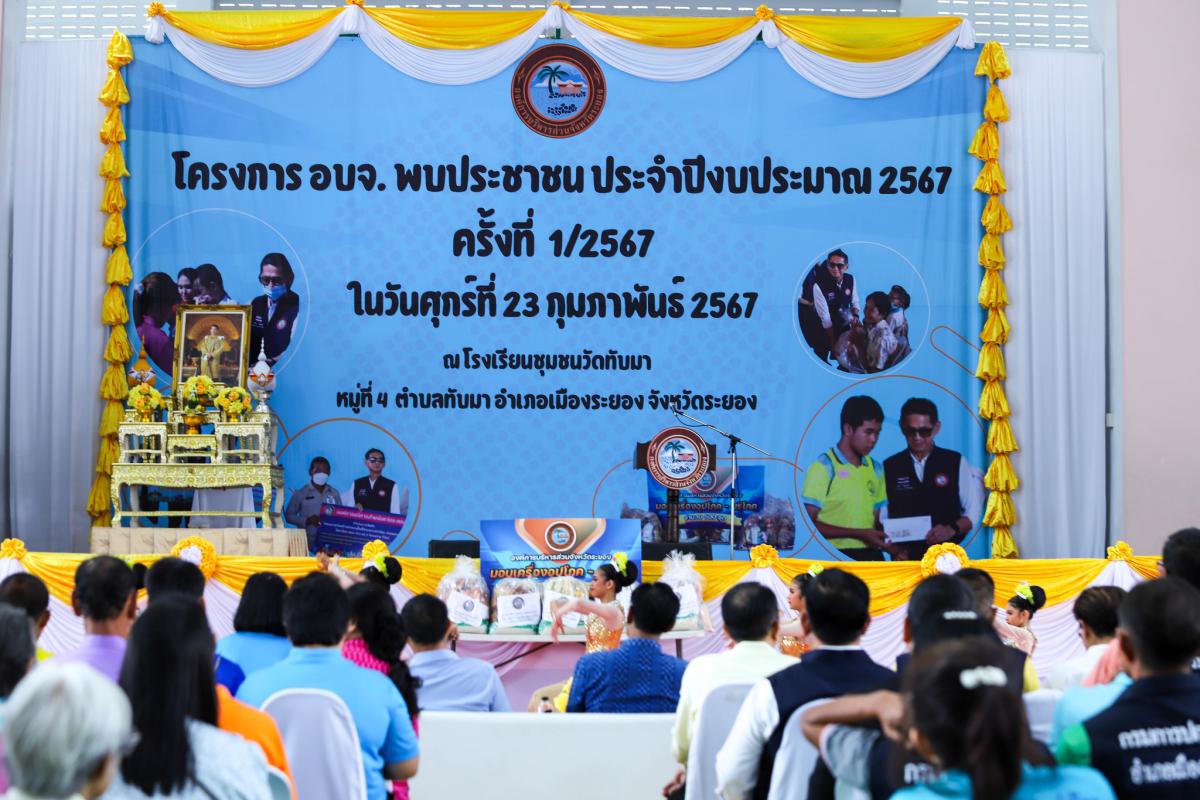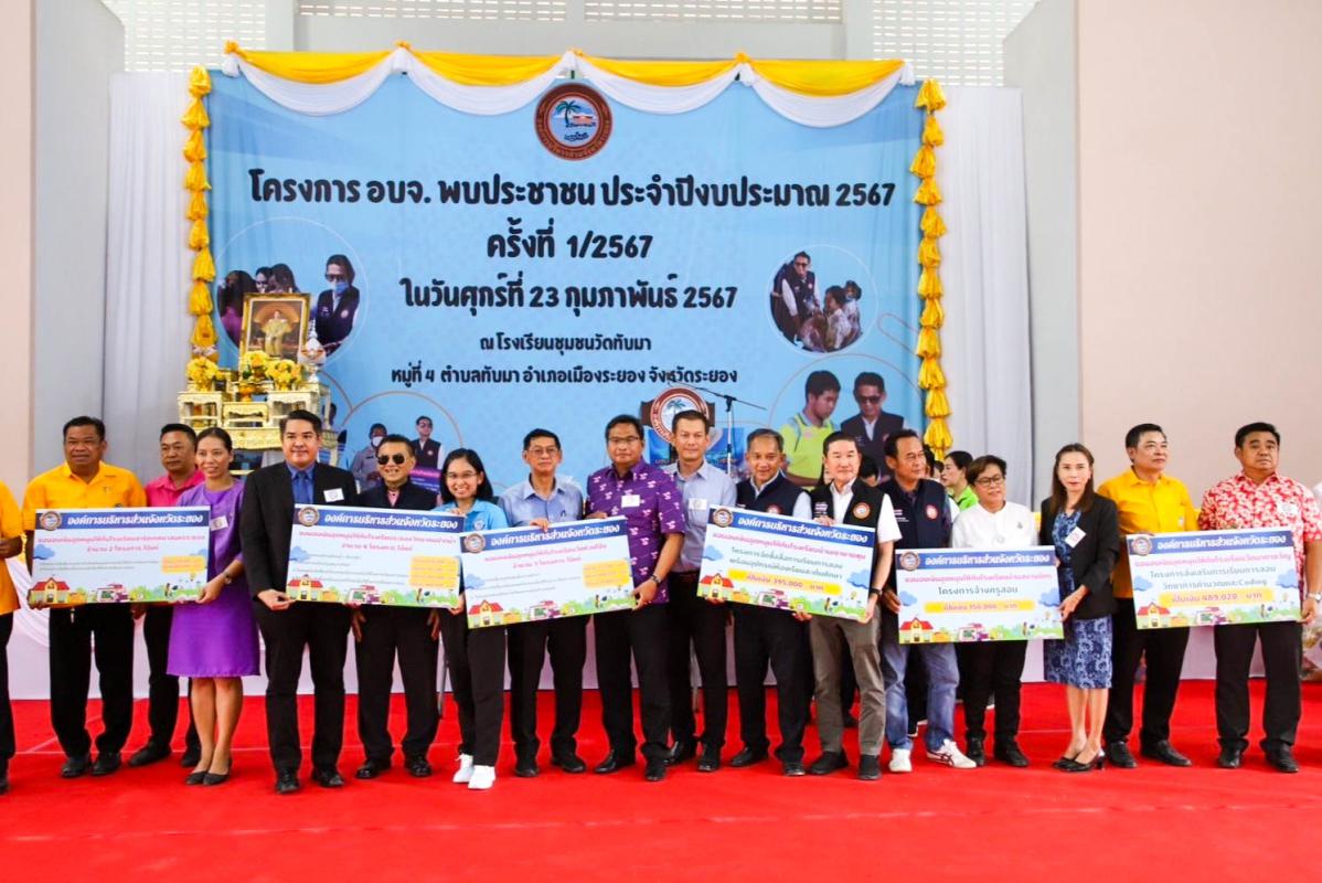 วันที่ 23 กุมภาพันธ์ 2567 เวลา 09.00 น. องค์การบริหารส่วนจังหวัดระยอง นายปิยะ ปิตุเตชะ นายกองค์การบริหารส่วนจังหวัดระยอง พร้อมด้วยคณะผู้บริหาร สมาชิกสภาองค์การบริหารส่วนจังหวัดระยอง หัวหน้าส่วนราชการ และเจ้าหน้าที่ที่เกี่ยวข้องเข้าร่วมโครงการ อบจ.พบประชาชน ครั้งที่ 2/2567 ณ โรงเรียนชุมชนวัดทับมา หมู่ 4 อำเภอทับมา อำเภอเมืองระยอง จังหวัดระยอง พร้อมนำหน่วยบริการเคลื่อนที่ภายใต้โครงการ “หน่วยบำบัดทุกข์ บำรุง สร้างรอยยิ้มให้กับประชาชน” ซึ่งโครงการดังกล่าวมีวัตถุประสงค์ เพื่อแก้ไขปัญหาความเดือดร้อนให้กับประชาชน และนำกิจกรรม, งานบริการของส่วนราชการ และหน่วยงานต่างๆ ออกให้บริการประชาชนนอกสถานที่ ภายในงานได้มีกิจกรรมต่างๆ เช่น การมอบข้าวของเครื่องอุปโภคบริโภคผู้ยากไร้, กิจกรรมให้ความรู้และควบคุมโรคติดต่อ, กิจกรรม CPR รักษาชีวิตพิชิตหัวใจ, การจำหน่ายสินค้าราคาถูก, กิจกรรมการแจกต้นไม้ และกิจกรรมอื่นๆอีกมากมาย โดยในช่วงบ่ายเป็นกิจกรรมการลงพื้นที่ตรวจเยี่ยมโรงพยาบาลส่งเสริมสุขภาพตำบลหนองตะพานและโรงพยาบาลส่งเสริมสุขภาพตำบลบ้านกระเฉท พร้อมร่วมรับฟังปัญหาต่างๆ ในพื้นที่เขตอำเภอเมือง จังหวัดระยอง
