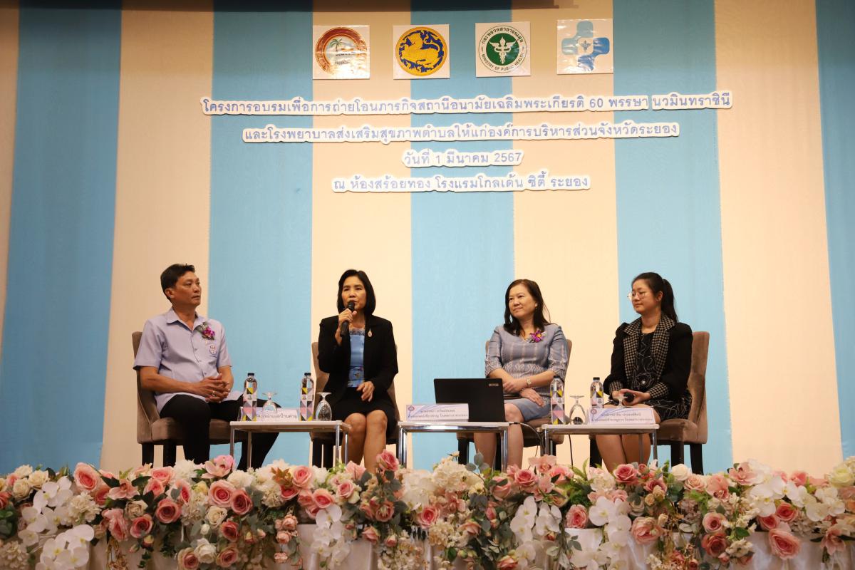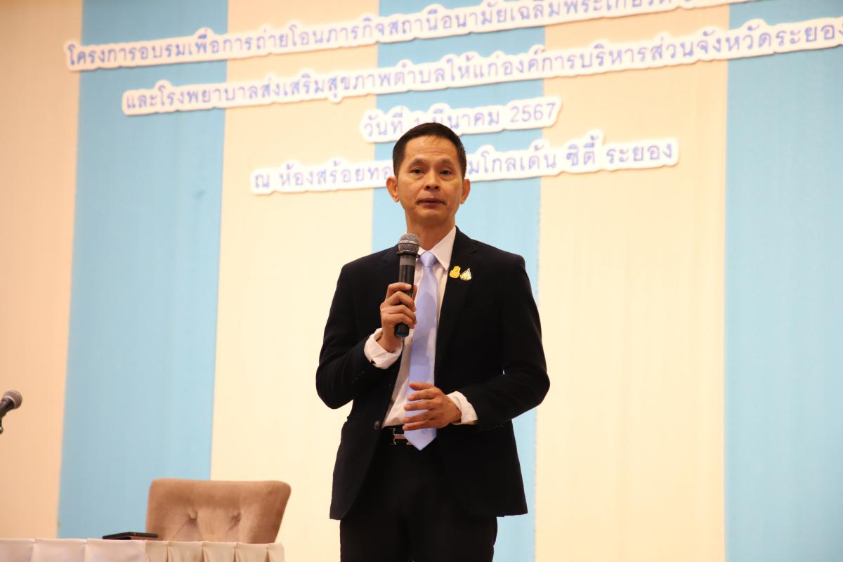 ซึ่งภายในโครงการฯได้จัดพิธีรับมอบสถานีอนามัยเฉลิมพระเกียรติ 60 พรรษา นวมินทราชินี และโรงพยาบาล ส่งเสริมสุขภาพตำบล ให้แก่องค์การบริหารส่วนจังหวัดระยอง จำนวน 45 แห่ง ประจำปีงบประมาณ 2567 การเสวนาหัวข้อ "ระบบบริการสาธารณสุขจังหวัดระยองหลังการถ่ายโอนภารกิจสถานีอนามัยเฉลิมพระเกียรติ 60 พรรษา นวมินทราชินี และโรงพยาบาลส่งเสริมสุขภาพตำบล" และการบรรยายในหัวข้อต่างๆ อาทิ ข้อระเบียบและกฎหมายที่เกี่ยวข้องในการถ่ายโอนภารกิจสอน. และ รพ.สต. ระเบียบที่เกี่ยวข้อง สิทธิสวัสดิการ ของพนักงานกระทรวงสาธารณสุข และลูกจ้างชั่วคราว" หลังการถ่ายโอนภารกิจ สอน. และ รพ.สต. โดยองค์การบริหารส่วนจังหวัดระยอง มีความพร้อมในการสนับสนุนในทุก ๆ ด้าน เพื่อให้พี่น้องชาวระยองได้รับการบริการสาธารณะ ด้านสาธารณสุขที่มีคุณภาพดียิ่งขึ้นในทุกพื้นที่ ณ ห้องสร้อยทอง 2 - 4 โรงแรมโกลเด้นซิตี้ ระยอง