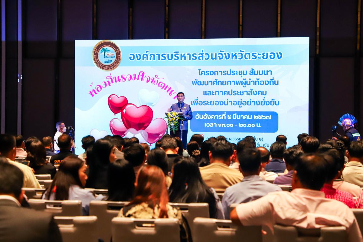 วันที่ 5 มีนาคม 2567 เวลา 14.00 น. นายปิยะ ปิตุเตชะ นายกองค์การบริหารส่วนจังหวัดระยอง พร้อมด้วย คณะผู้บริหาร หัวหน้าส่วนราชการ สมาชิกสภาองค์การบริหารส่วนจังหวัดระยอง ผู้นำองค์กรปกครองส่วนท้องถิ่น สื่อมวลชน และเจ้าหน้าที่ที่เกี่ยวข้องเข้าร่วมพิธีเปิดโครงการประชุม สัมมนาพัฒนาศักยภาพผู้นำท้องถิ่นและภาคประชาสังคม เพื่อระยองน่าอยู่อย่างยั่งยืน โดยมี นายไตรภพ วงศ์ไตรรัตน์ ผู้ว่าราชการจังหวัดระยอง เป็นประธานในพิธีเปิดโครงการฯ พร้อมมอบโล่ประกาศเกียรติคุณให้แก่ ผู้ที่ทำคุณประโยชน์ในด้านการพัฒนาจังหวัดระยอง ซึ่งโครงการดังกล่าว มีวัตถุประสงค์เพื่อให้ผู้นำองค์กรปกครองส่วนท้องถิ่น สื่อมวลชน ให้ได้รับทราบถึงภารกิจสำคัญที่องค์การบริหารส่วนจังหวัดระยอง ดำเนินการเพื่อมุ่งหวังให้พี่น้องประชาชนในจังหวัดระยองมีคุณภาพชีวิตที่ดีขึ้นในทุกๆ ด้าน ควบคู่ไปกับการพัฒนาจังหวัดระยองให้เป็นเมืองที่น่าอยู่อย่างยั่งยืน ณ โรงแรมโนโวเทล ระยอง สตาร์ คอนเวนชั่น เซ็นเตอร์ อำเภอเมืองระยอง จังหวัดระยอง