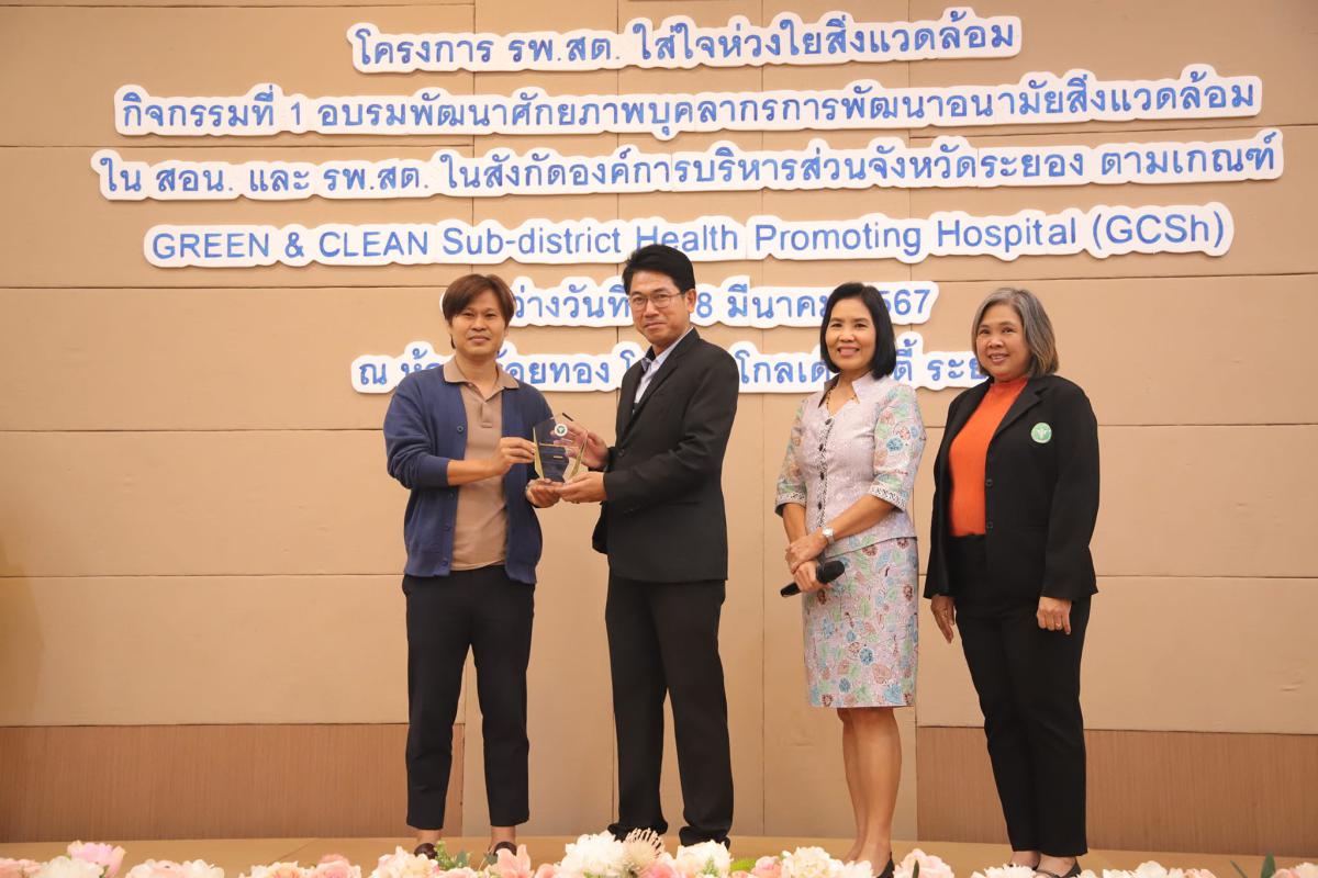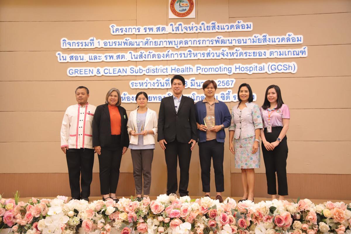 วันที่ 8 มีนาคม 2567 เวลา 09.00 น. ณ โรงแรมโกลเด้น ซิตี้ ระยอง นายปวเรศ หลวงกิจจา และนางสาวสุพิชชา ปาปะไพ นักวิชาการสาธารณสุขปฏิบัติการ จากศูนย์อนามัยที่ 6 ร่วมเป็นวิทยากรบรรยาย ให้ความรู้แก่ผู้เข้าร่วม"โครงการ รพ.สต. ใส่ใจห่วงใยสิ่งแวดล้อม" กิจกรรมที่ 1 อบรมพัฒนาศักยภาพบุคลากรการพัฒนาอนามัยสิ่งแวดล้อมใน สอน.และ รพ.สต. ในสังกัดองค์การบริหารส่วนตังหวัดระยอง ตามเกณฑ์ Green & Clean Sub-district Health Promoting Hospital (GCSh) และมีการฝึกปฏิบัติการการใช้งานโปรแกรมประเมิน Green & Clean Hospital พร้อมแบ่งกลุ่มเพื่อทำกิจกรรมฝึกช่วยปฏิบัติด้วยชุดตรวจน้ำและอาหาร พร้อมกับนายสมเกียรติ ยุพาพิน รองปลัดองค์การบริหารส่วนจังหวัดระยอง ได้มอบโล่ห์รางวัลให้กับ รพ.สต.เพ และ รพ.สต.หนองกรับ ด้วย