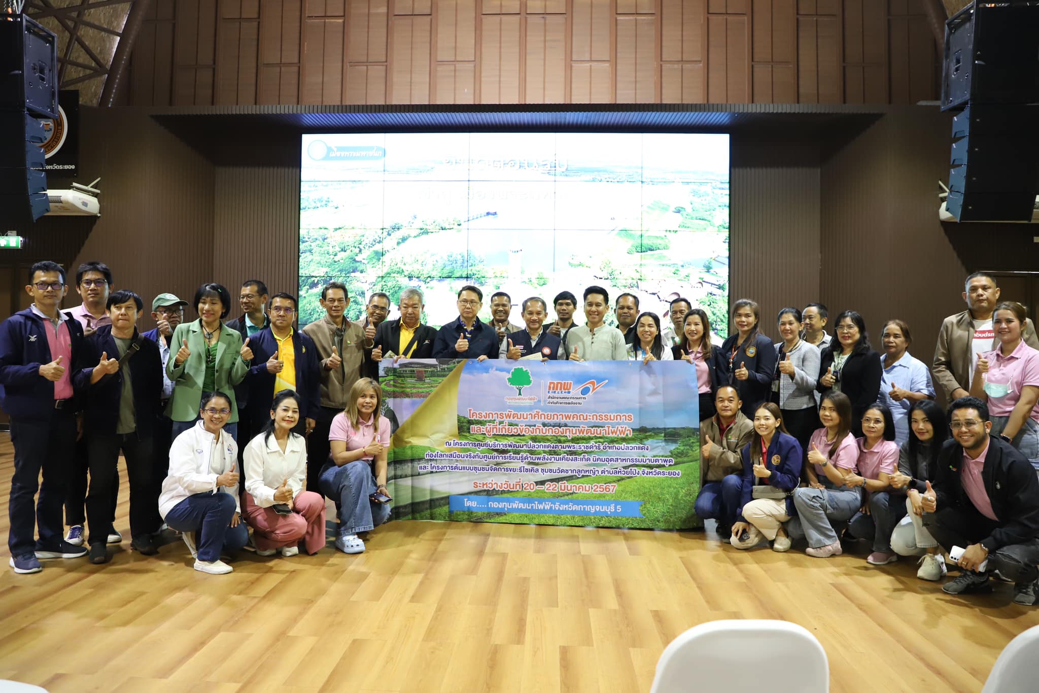 วันที่ 20 มีนาคม 2567 เวลา 14.00 น. นายประสานต์ พฤกษาชาติ รองนายกองค์การบริหารส่วนจังหวัดระยอง (2) พร้อมด้วย นายสกนธ์ กรกฎ นายอำเภอปลวกแดง, นางสาววรนุช สีแดง เกษตรจังหวัดระยอง, นายวัลลภ จันทร์งาม ผู้อำนวยการศูนย์ส่งเสริมและพัฒนาอาชีพการเกษตรจังหวัดระยอง และเจ้าหน้าที่ที่เกี่ยวข้องร่วมให้การต้องรับคณะศึกษาดูงานจากกองทุนพัฒนาไฟฟ้าจังหวัดกาญจนบุรี 5 ซึ่งนำโดย ร้อยโททศพล ไชยโกมินทร์ ผู้ว่าราชการจังหวัดกาญจบุรี พร้อมด้วยคณะ เข้ารับฟังการบรรยาย ชมนิทรรศการตามรอยพ่อหลวง และเยี่ยมชมพื้นที่โดยรอบของศูนย์บริการการพัฒนาปลวกแดงตามพระราชดำริ จังหวัดระยอง เพื่อนำความรู้ที่ได้รับมาประยุกต์ใช้กับท้องถิ่นของตนเองต่อไป