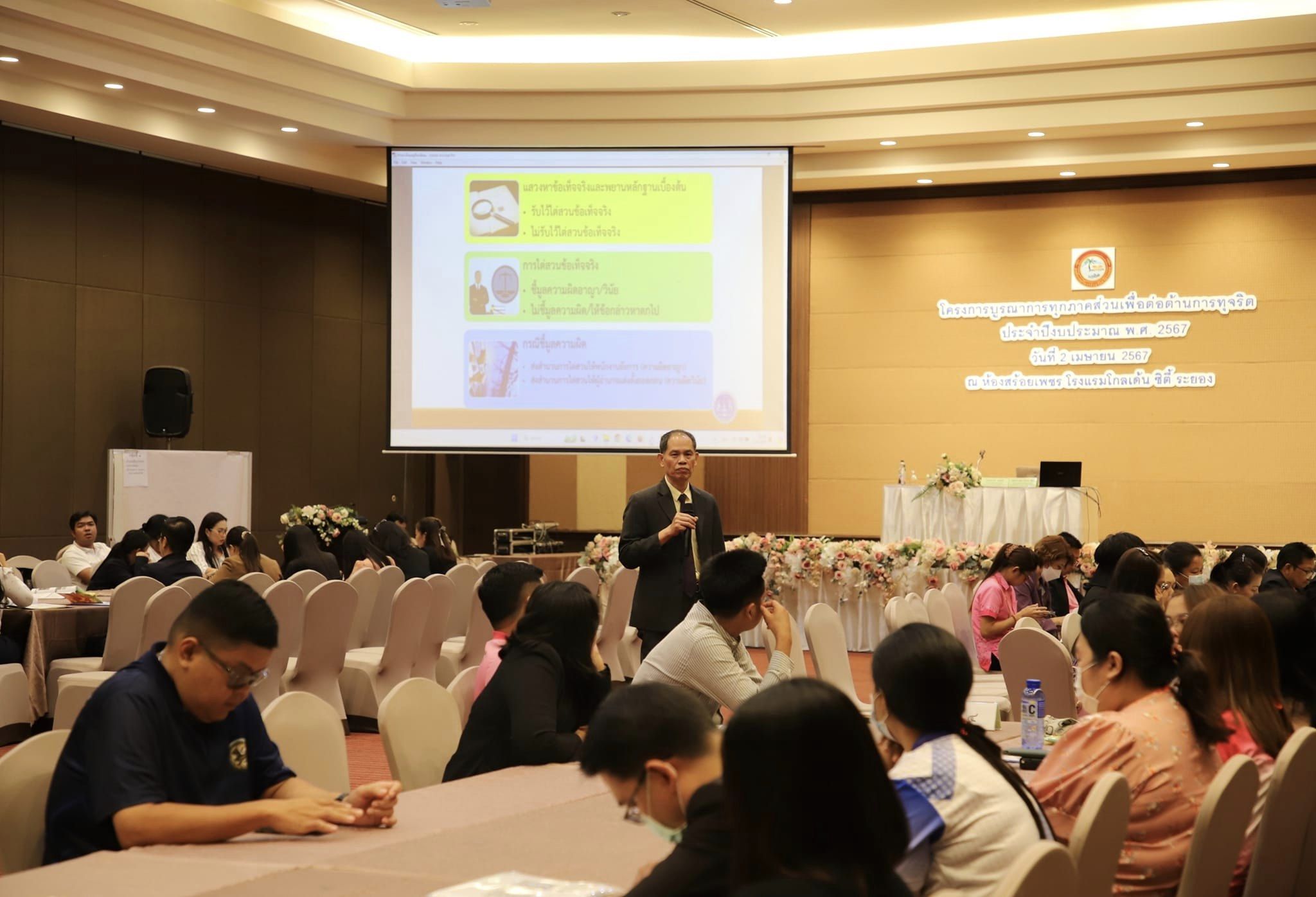 วันที่ 2 เมษายน 2567 เวลา 09.00 น. นายปิยะ ปิตุเตชะ นายกองค์การบริหารส่วนจังหวัดระยอง เป็นประธานเปิดโครงการบูรณาการทุกภาคส่วนเพื่อต่อต้านการทุจริต ประจำปีงบประมาณ พ.ศ.2567 โดยมีนายสุรินทร์ แสงทอง ปลัดองค์การบริหารส่วนจังหวัดระยอง เป็นผู้กล่าวรายงาน พร้อมด้วย คณะผู้บริหาร หัวหน้าส่วนราชการ และผู้ที่เกี่ยวข้องเข้าร่วมอย่างพร้อมเพรียง ณ ห้องสร้อยเพชร โรงแรมโกลเด้น ซิตี้ ระยอง