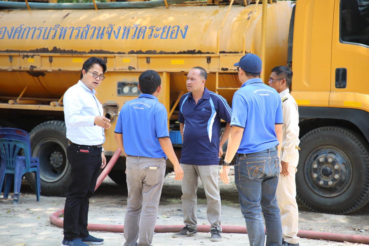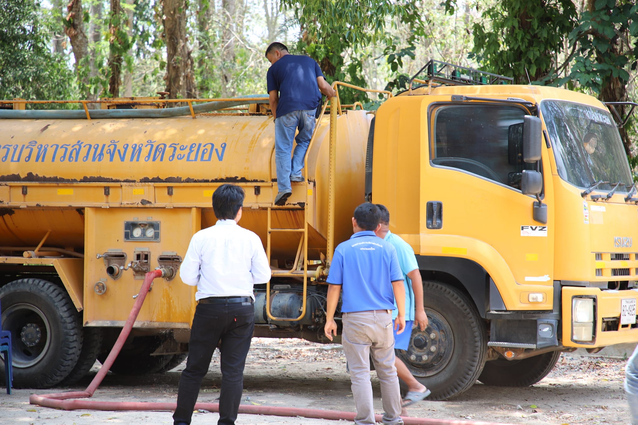 อบจ.ระยองสนับสนุนรถบรรทุกน้ำ เพื่อช่วยเหลือประชาชนในพื้นที่ที่ขาดแคลนน้ำ บริเวณหมู่ที่ 12 ตำบลบางบุตร