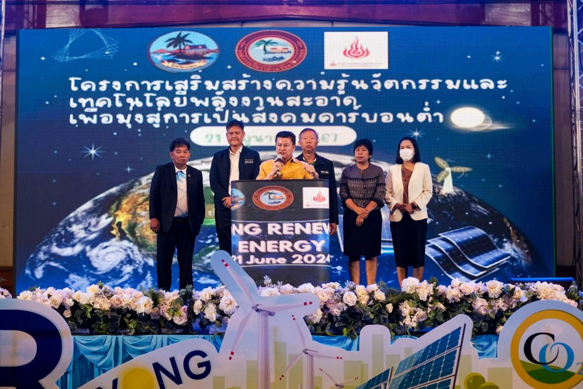วันที่ 21 มิถุนายน 2567 เวลา 09.00 น. องค์การบริหารส่วนจังหวัดระยองร่วมมือกับสำนักงานพลังงานจังหวัดระยอง จัดโครงการเสริมสร้างความรู้นวัตกรรมและเทคโนโลยีพลังงานสะอาด เพื่อมุ่งสู่การเป็นสังคมคาร์บอนเครดิตต่ำ โดยมี นายกำธร เวหน รองผู้ว่าราชการจังหวัดระยอง เป็นประธานกล่าวเปิดโครงการฯ พร้อมด้วย นายสุรินทร์ แสงทอง ปลัดองค์การบริหารส่วนจังหวัดระยอง เป็นผู้กล่าวรายงานวัตถุประสงค์ของการจัดโครงการฯ ผู้แทนจากหน่วยงานภาครัฐ ภาคเอกชน และผู้ที่เกี่ยวข้องเข้าร่วมพิธีเปิดโครงการโดยพร้อมเพรียงกัน