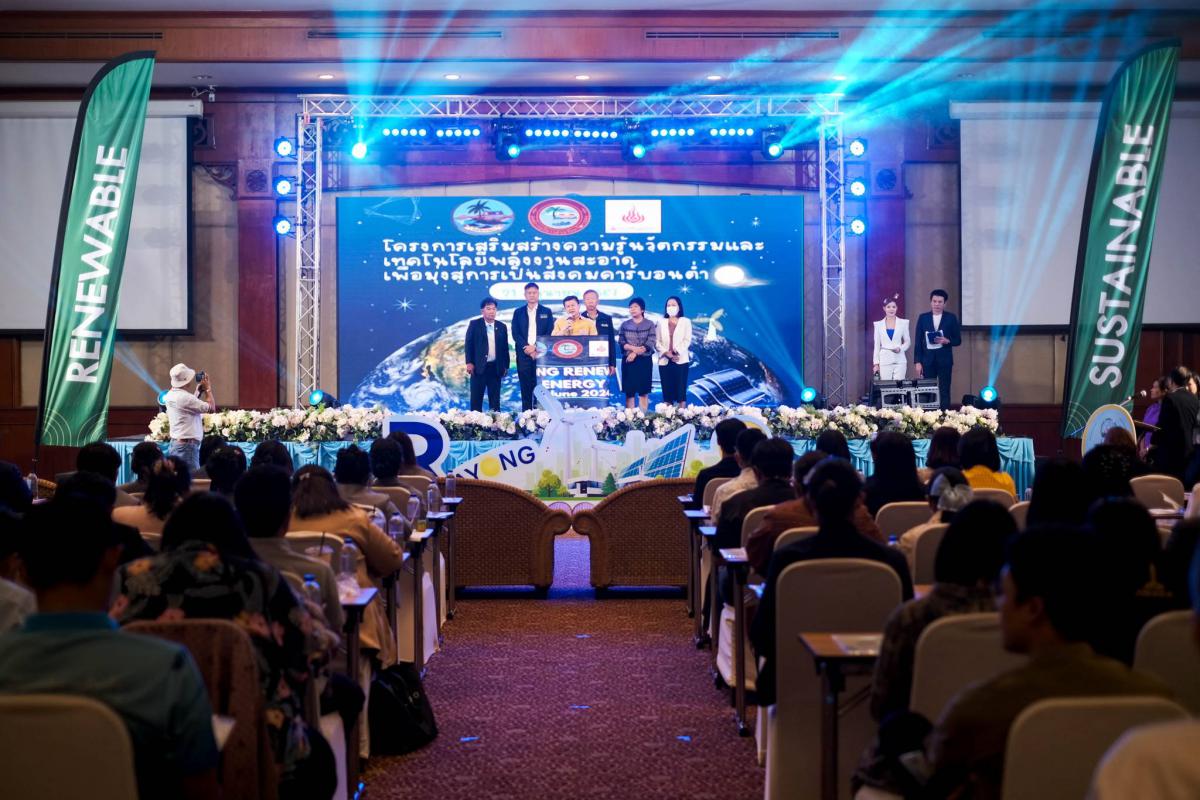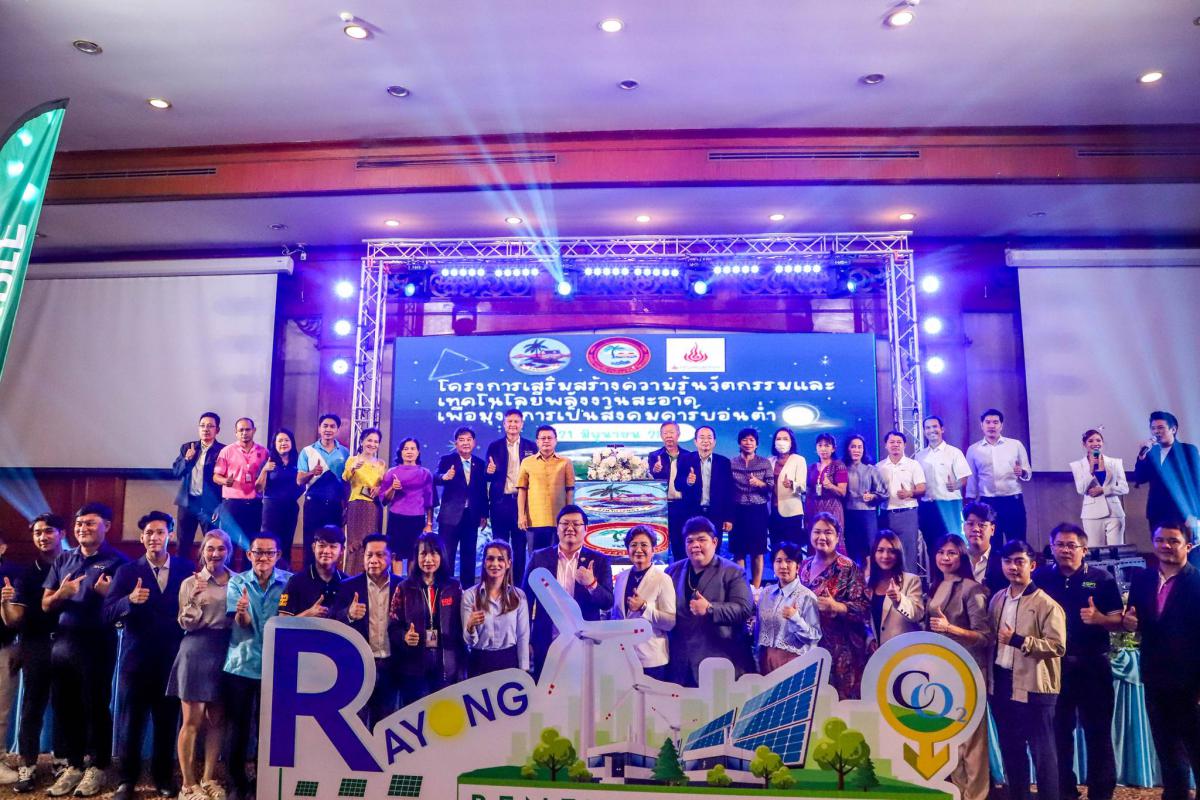 โครงการเสริมสร้างความรู้นวัตกรรมและเทคโนโลยีพลังงานสะอาด เพื่อมุ่งสู่การเป็นสังคมคาร์บอนเครดิตต่ำ จัดขึ้นเพื่อส่งเสริมให้ทุกภาคส่วนในจังหวัดระยอง ทั้งหน่วยงานภาครัฐและภาคเอกชนใช้พลังงานแสงอาทิตย์เป็นพลังงานทดแทน ซึ่งเป็นแนวทางที่เหมาะสมที่จะช่วยให้จังหวัดระยองลดการใช้พลังงานจากฟอสซิล เพิ่มสัดส่วนการใช้พลังงานทดแทนเพื่อการอนุรักษ์พลังงาน ลดการปล่อยก๊าซเรือนกระจกได้อย่างยั่งยืน รวมทั้งยังสามารถขยายผลไปสู่การขายคาร์บอนเครดิตได้ ภายในงานได้มีการจัดบูธนิทรรศการ จำนวน 12 บูธ พร้อมรับฟังการบรรยาย และแลกเปลี่ยนรับฟังการเสวนาในหัวข้อ “ทิศทางโลก ทิศทางไทย ในสังคมคาร์บอนต่ำและการพัฒนาอย่างยั่งยืน (SDGs) เราจะเดินสู่เป้าหมายอย่างไร” ซึ่งได้รับเกียรติจาก นายประสานต์ พฤกษาชาติ รองนายกองค์การบริหารส่วนจังหวัดระยอง (2) และผู้แทนจากหน่วยงานที่เกี่ยวข้อง ณ ห้องสุนทรภู่ โรงแรมสตาร์ คอนเวนชั่น ระยอง อำเภอเมืองระยอง จังหวัดระยอง