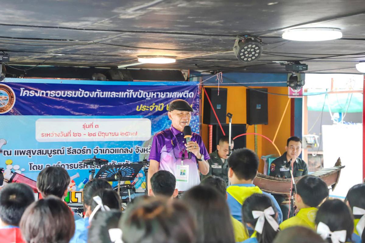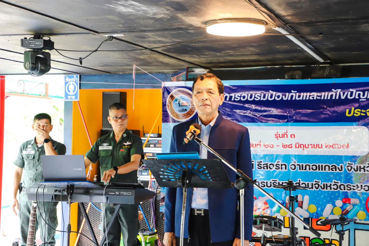 เมื่อวันที่ 26 มิถุนายน 2567 เวลา 13.00 น. นายจรัญ ความเพียร เลขานุการองค์การบริหารส่วนจังหวัดระยอง ให้เกียรติเป็นประธานในการเปิดโครงการอบรมป้องกันและแก้ไขปัญหายาเสพติด ประจำปี 2567 (รุ่นที่ 3) โดยมีนายกฤษฎา บุญญในรังษี นักจัดการงานทั่วไปชำนาญการ เป็นผู้กล่าวรายงาน พร้อมด้วย นายพายัพ ผ่องใส เลขานุการสมาคมกีฬาแห่งจังหวัดระยอง, นางสาวณิชชา โตใหญ่ดี ผู้อำนวยการโรงเรียนเขาชะเมาวิทยา และเจ้าหน้าที่ที่เกี่ยวข้องเข้าร่วมโครงการอย่างพร้อมเพรียง ซึ่งได้รับเกียรติจาก นายก้าวไกล กตะศิลา ตำรวจตระเวนชายแดนที่ 11 จังหวัดจันทบุรี, นายจารึก อุดจันทึก ตำรวจตระเวนชายแดนที่ 11 จังหวัดจันทบุรี, นางสาวดรรชนี คงช่วย ผู้อำนวยการโรงเรียนบ้านสามแยกน้ำเป็น, นายสายัณห์ มาลีบํารุง ครูศูนย์ส่งเสริมการเรียนรู้เขาชะเมา, นายเชิดศักดิ์ รัชสมบัติ ข้าราชการบำนาญ มาร่วมให้ความรู้แก่ผู้เข้าร่วมโครงการ ณ แพสุขสมบูรณ์รีสอร์ท อำเภอแกลง จังหวัดระยอง