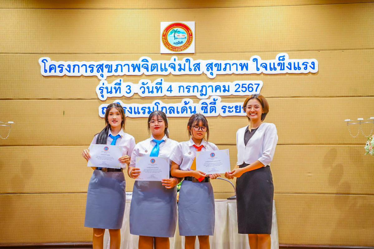 วันที่ 4 กรกฎาคม 2567 เวลา 09.00 น. กองสาธารณสุข อบจ.ระยอง จัดโครงการสุขภาพจิตแจ่มใส สุขภาพใจแข็งแรง โดยมีจุดประสงค์เพื่อให้นักเรียน ครู และบุคลากรในสังกัดองค์การบริหารส่วนจังหวัดระยองเข้าร่วมโครงการจำนวน 300 คน ให้ได้มีความรู้ ความเข้าใจเรื่องสุขภาพจิตและภาวะซึมเศร้า สามารถแก้ไขปัญหาต่างๆได้อย่างมีประสิทธิภาพ และดำรงชีวิตอยู่ในสังคมได้อย่างปกติสุข รวมถึงเพื่อครูและบุคลากรทางการศึกษาในสังกัด ได้มีทักษะที่จำเป็นในการเตรียมพร้อมรับมือในการดูแลนักเรียนกลุ่มที่มีภาวะซึมเศร้าได้ทันท่วงที โดยมีกำหนดการจัดโครงการในรุ่นที่ 3 -4 ในวันที่ 4 – 5 กรกฎาคม 2567 ซึ่งได้รับเกียรติจากนางสาวกรผกา พัฒนกำพล และคณะ ให้เกียรติมาเป็นวิทยากรในโครงการดังกล่าว ณ โรงแรมโกลเด้น ซิตี้ ระยอง อ.เมือง จ.ระยอง