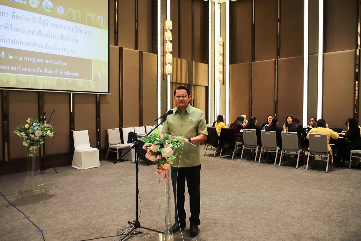 วันที่ 4 กรกฎาคม 2567 เวลา 10.30 น. นายไตรภพ วงศ์ไตรรัตน์ ผู้ว่าราชการจังหวัดระยองพร้อมด้วย นายประสานต์ พฤกษาชาติ รองนายกองค์การบริหารส่วนจังหวัดระยอง(2) ข้าราชการ คณะครู และผู้ที่เกี่ยวข้องเข้าร่วมพิธีปิดโครงการขยายผลวิทยากรเพื่อทำหน้าที่ผู้ถ่ายทอดความรู้เกี่ยวกับประวัติศาสตร์ชาติไทยประจำท้องถิ่นระดับอำเภอ และระดับองค์กรปกครองส่วนท้องถิ่น (ครู ข) พร้อมทั้งมอบวุฒิบัตรให้แก่ผู้เข้าร่วมอบรมจำนวน 124 ราย โดยวัตถุประสงค์เพื่อเป็นการเสริมสร้างความรู้ความเข้าใจที่ถูกต้องเกี่ยวกับบทบาทและความสำคัญของสถาบันพระมหากษัตริย์ต่อสังคมไทย มีความรู้เรื่องประวัติศาสตร์ชาติไทย เกิดความภาคภูมิใจในชาติไทยและเกิดความซาบซึ้ง สำนึกในบุญคุณของพระมหากษัตริย์ไทย และพัฒนาทักษะเป็นนักเล่าเรื่องประวัติศาสตร์ชาติไทยและบุญคุณของพระมหากษัตริย์ไทยได้อย่างมีประสิทธิภาพ โดยนำไปขยายผลในการจัดการเรียนการสอนให้กับนักเรียน นักศึกษา และประชาชนทั่วไปได้อย่างถูกต้อง ณ ห้องประชุมสุวรรณมาลี โรงแรมโนโวเทล ระยอง สตาร์ คอนเวนชั่น เซนเตอร์