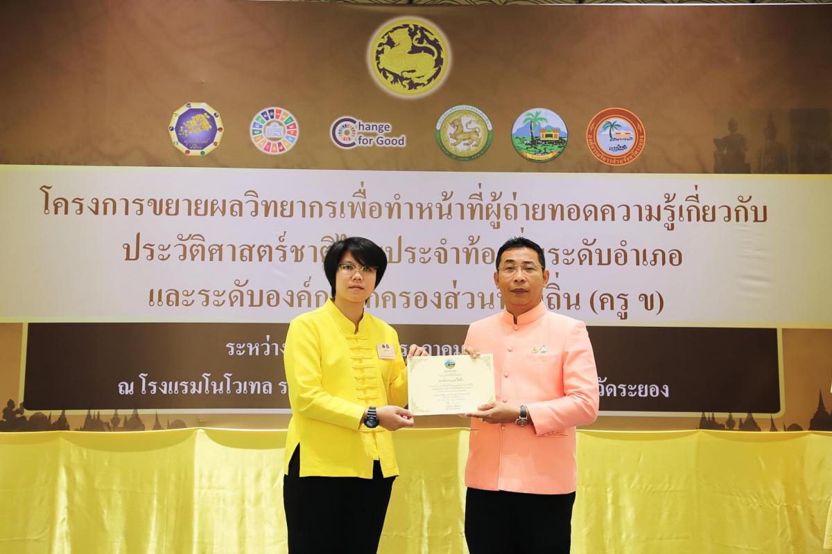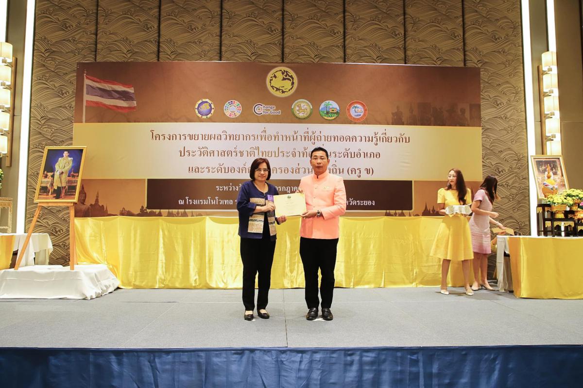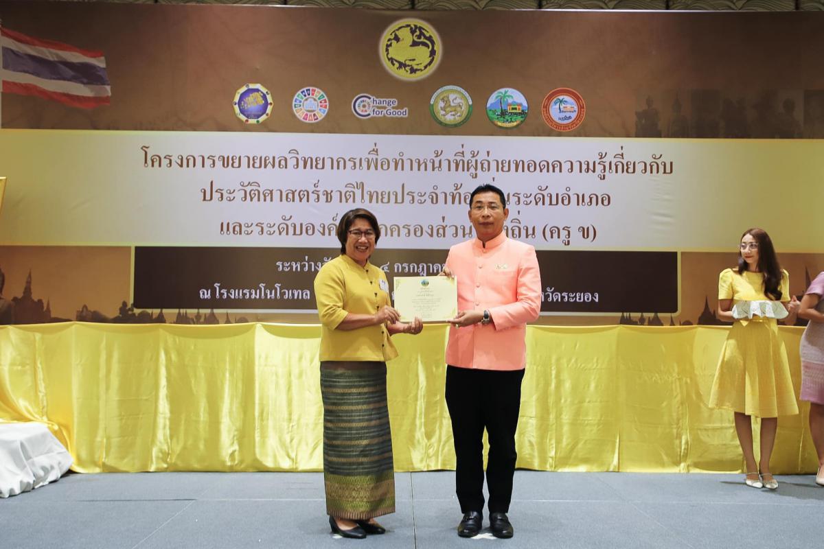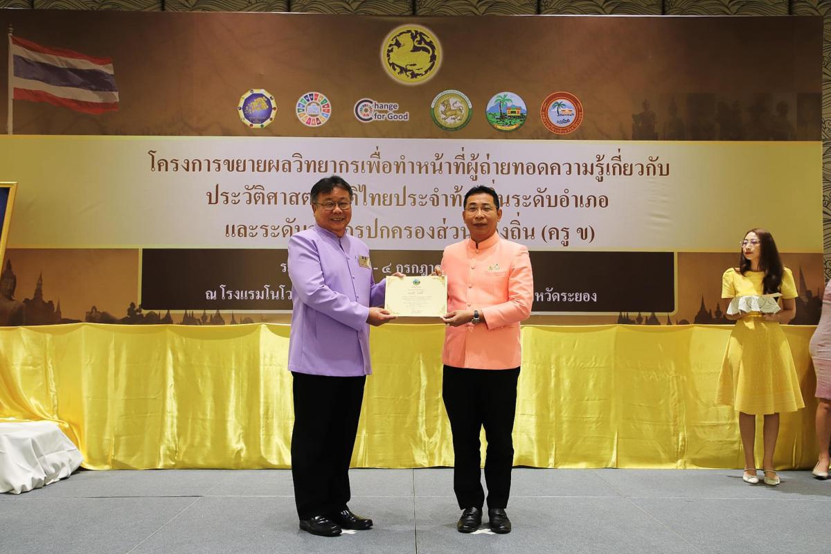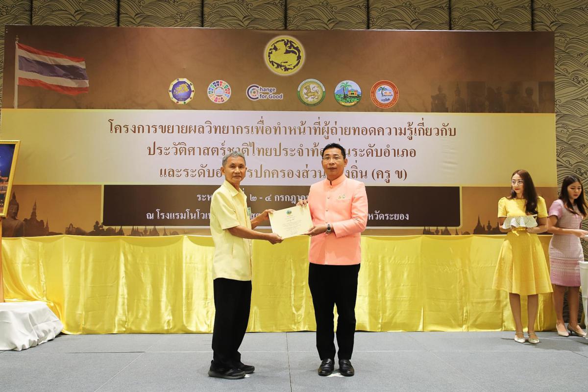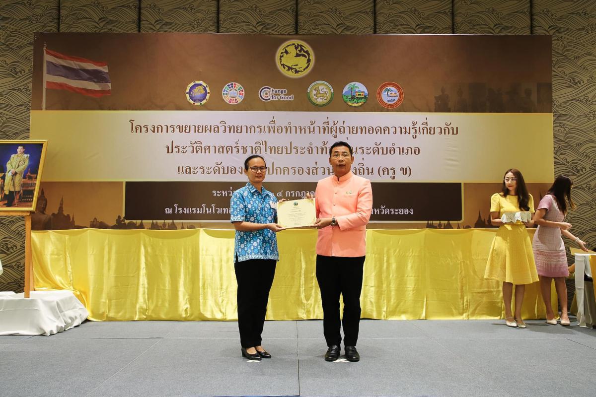 องค์การบริหารส่วนจังหวัดระยอง ร่วมกับจังหวัดระยอง เข้าร่วมพิธีปิดโครงการขยายผลวิทยากรเพื่อทำหน้าที่ผู้ถ่ายทอดความรู้เกี่ยวกับประวัติศาสตร์ชาติไทยประจำท้องถิ่นระดับอำเภอ และระดับองค์กรปกครองส่วนท้องถิ่น (ครู ข)