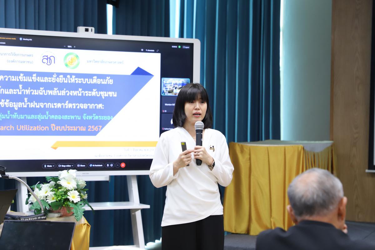 วันที่ 1 สิงหาคม 2567 เวลา 13.30 น. นายประสานต์ พฤกษาชาติ รองนายกองค์การบริหารส่วนจังหวัดระยอง เข้าร่วมประชุมปฐมนิเทศโครงการวิจัย เรื่อง การสร้างความเข็มแข็งและยั่งยืนให้ระบบเตือนภัยฝนตกหนักและน้ำท่วมฉับพลันล่วงหน้าระดับชุมชนด้วยการใช้ข้อมูลน้ำฝนจากเรดาร์ตรวจอากาศ : กรณีศึกษาลุ่มน้ำทับมาและลุ่มน้ำคลองสะพาน จังหวัดระยอง โดยมีรองศาสตราจารย์ ดร.พรรณพิมพ์ พุทธรักษา มะเปี่ยม หัวหน้าโครงการวิจัยฯ จากมหาวิทยาลัยเกษตรศาสตร์ นำเสนอข้อมูลโครงการ นำเสนอเทคโนโลยีการจำลองน้ำฝนเรดาร์แบบใกล้เวลาจริง และแบบพยากรณ์ระยะสั้นในพื้นที่ลุ่มน้ำทับมาและลุ่มน้ำคลองสะพาน จังหวัดระยอง รวมถึงการ ใช้งานระบบ Radar4Flood เพื่อสร้างเครือข่ายระดับชุมชน สำหรับการเฝ้าระวังภัยฝนตกฝนตกหนักและน้ำท่วมล่วงหน้า ณ ห้องประชุม 3 ชั้น 3 อบจ.ระยอง