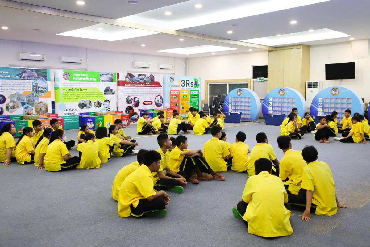 วันที่ 8 สิงหาคม 2567 เวลา 08.30 น. นักเรียนโรงเรียนชุมชนวัดบ้านแลง เข้าร่วมโครงการอบรมและศึกษาดูงานการบริหารจัดการขยะภายใต้แนวคิดเศรษฐกิจพอเพียง ณ ห้องประชุมศูนย์กำจัดขยะมูลฝอยรวมแบบครบวงจรฯ โดยกองสาธารณสุข องค์การบริหารส่วนจังหวัดระยอง ได้จัดทำโครงการนี้ขึ้นเพื่อเป็นจุดเริ่มต้นของการปลูกจิตสำนึกให้กับนักเรียน ให้มีความรู้ ความเข้าใจในการคัดแยกขยะให้ถูกวิธีตามหลัก 3Rs คือ การลด การใช้ซ้ำ และการแปรรูปใช้ใหม่ ซึ่งมีกลุ่มเป้าหมาย จำนวน 18 โรงเรียน เพื่อให้นักเรียนเกิดความเคยชินในการคัดแยก และสามารถขยายผลไปสู่คนในครอบครัว ส่งผลให้ปริมาณขยะมูลฝอยที่เข้ามากำจัดที่ศูนย์กำจัดขยะมูลฝอยรวมแบบครบวงจรฯ มีปริมาณน้อยลง ซึ่งเป็นการแก้ไขปัญหาการจัดการขยะที่ต้นทางอย่างยั่งยืนต่อไป
