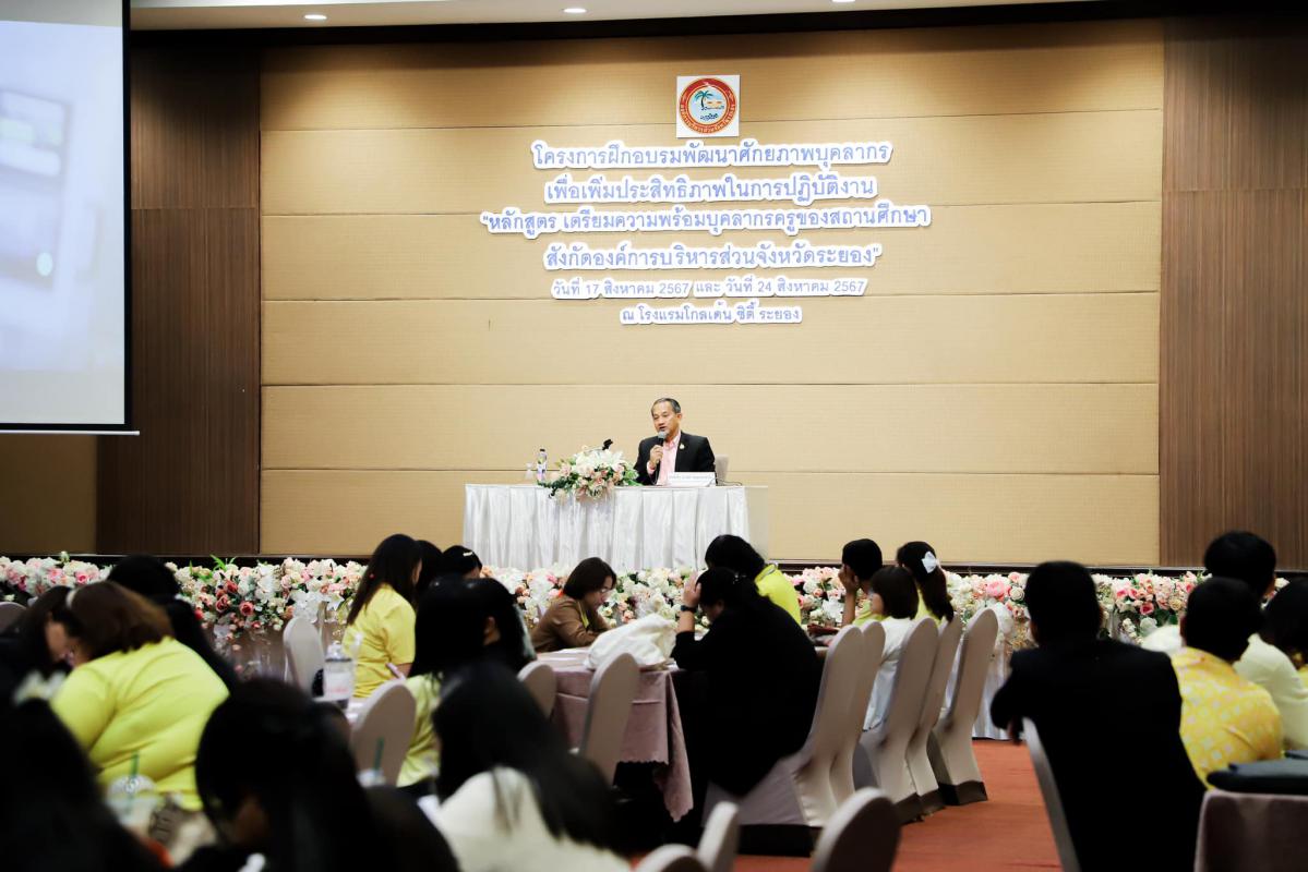 วันที่ 17 สิงหาคม 2567 เวลา 09.00 น. นายประสานต์ พฤกษาชาติ รองนายกองค์การบริหารส่วนจังหวัดระยอง (2) ให้เกียรติเป็นประธานในพิธีเปิดโครงการฝึกอบรมพัฒนาศักยภาพบุคลากรเพื่อเพิ่มประสิทธิภาพในการปฏิบัติงาน "หลักสูตร เตรียมความพร้อมบุคลากรครูของสถานศึกษา สังกัดองค์การบริหารส่วนจังหวัดระยอง" พร้อมด้วย หัวหน้าส่วนราชการ คณะครู สังกัดองค์การบริหารส่วนจังหวัดระยอง และเจ้าหน้าที่ที่เกี่ยวข้อง โดยมีนางณมน พุ่มพฤกษี ผู้อำนวยการกองการเจ้าหน้าที่ เป็นผู้กล่าวรายงาน ณ ห้องสร้อยเพชร โรงแรมโกลเด้น ซิตี้ ระยอง อำเภอเมืองระยอง จังหวัดระยอง