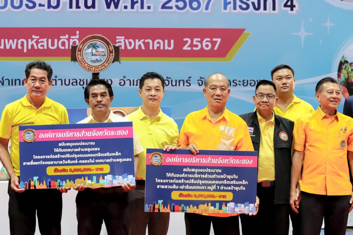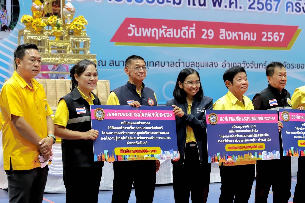 วันที่ 29 สิงหาคม 2567 เวลา 13.00 น. องค์การบริหารส่วนจังหวัดระยอง นำโดย นายปิยะ ปิตุเตชะ นายกองค์การบริหารส่วนจังหวัดระยอง พร้อมด้วย คณะผู้บริหาร สมาชิกสภาองค์การบริหารส่วนจังหวัดระยอง หัวหน้าส่วนราชการ และเจ้าหน้าที่ที่เกี่ยวข้องเข้าร่วมโครงการ อบจ.พบประชาชน ประจำปีงบประมาณ พ.ศ. 2567 ครั้งที่ 4 ณ สนามกีฬาเทศบาลตำบลชุมแสง อำเภอวังจันทร์ จังหวัดระยอง โดยมี นายมนัส สมศักดิ์ สมาชิกสภาองค์การบริหารส่วนจังหวัดระยอง เขต 1 อำเภอวังจันทร์ เป็นผู้กล่าวรายงาน ซึ่งโครงการดังกล่าวมีวัตถุประสงค์เพื่อแก้ไขปัญหาความเดือดร้อนให้กับประชาชน และนำกิจกรรม งานบริการของส่วนราชการ และหน่วยงานต่างๆ ออกให้บริการประชาชนนอกสถานที่ ภายในงานได้มีกิจกรรมต่างๆ เช่น การมอบข้าวของเครื่องอุปโภคบริโภคผู้ยากไร้, การจำหน่ายสินค้าราคาถูก, กิจกรรมการแจกต้นไม้ และกิจกรรมอื่นๆอีกมากมาย รวมไปถึงการลงพื้นที่ตรวจเยี่ยมสถานีอนามัยเฉลิมพระเกียรติ 60 พรรษา นวมินทราชินี บ้านน้ำใส,โรงพยาบาลส่งเสริมสุขภาพตำบลบ้านชำฆ้อ และโรงพยาบาลส่งเสริมสุขภาพตำบลบ้านเขาตาอิ๋น เพื่อรับฟังปัญหา พร้อมมอบนโยบายและแนวทางแก้ไขต่อไป
