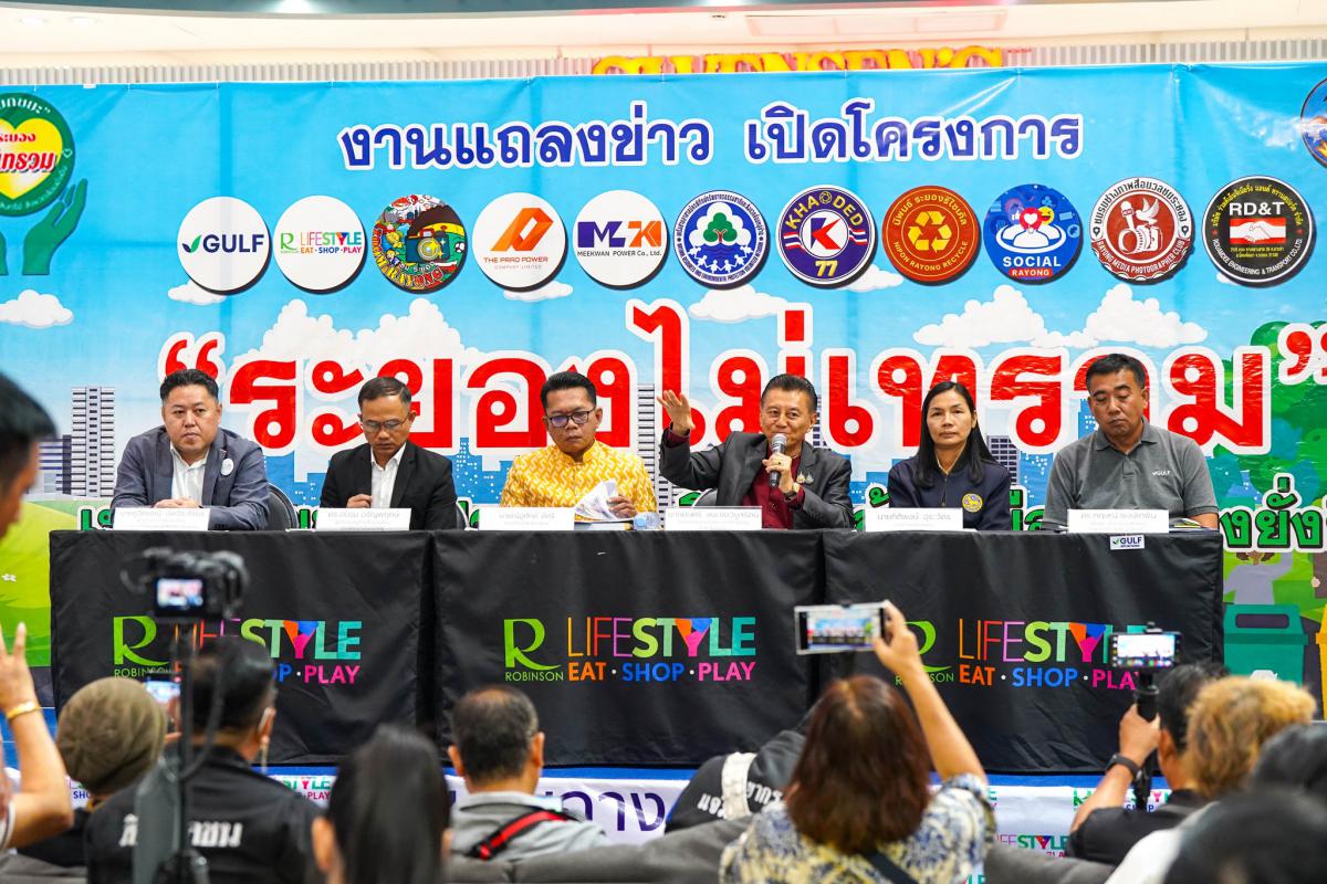 วันที่ 26 กันยายน 2567 เวลา 13.30 น. นายมนตรี ชนะชัยวิบูลวัฒน์ ที่ปรึกษานายกองค์การบริหารส่วนจังหวัดระยอง พร้อมด้วย นายสุริยะ ศิริวัฒน์ โรงพยาบาลส่งเสริมสุขภาพตำบล รักษาราชการแทน ผู้อำนวยการกองสาธารณสุข, นายณัฐศักย์ ดีศรี ท้องถิ่นจังหวัดระยอง, นางยุวพรรณ ทับแก้ว ปลัดอำเภอบ้านฉาง, ดร.อบรม อรัญพฤกษ์ ผู้เชี่ยวชาญด้านสิ่งแวดล้อม และพัฒนาเมืองน่าอยู่, ดร.กฤษณ์ พงษ์เทพิน ผู้ช่วยผูอำนวยการฝ่ายชุมชนสัมพันธ์ กลุ่มบริษัทกัลฟ์ เอ็มทีพี แอลเอ็น จีเทอร์มินอล จำกัด (GMTP), นายภูวิศธรณ์ เลิศวีระศิริกุล ผู้จัดการทั่วไปฝ่ายบริหาร ศูนย์การค้าโรบินสันไลฟ์สไตล์ บ้านฉาง และผู้ที่เกี่ยวข้องเข้าร่วมงานแถลงข่าวเปิดตัวโครงการ “ระยองไม่เทรวม” เปลี่ยนขยะเป็นประโยชน์ สิ่งแวดล้อมเมืองระยองยั่งยืน ซึ่งจัดขึ้นโดยกลุ่มภาคประชาสังคมด้านสิ่งแวดล้อมในจังหวัดระยอง ได้แก่ สื่อมวลชน เครือข่ายนักวิชาการ เกษตรกรรุ่นใหม่ Yong Smart Farmer และภาคอุตสาหกรรมเอกชน โดยมีวัตถุประสงค์ เพื่อเป็นหน่วยปฏิบัติการความร่วมมือและปฏิบัติการทางสังคม โดยการนำองค์ความรู้จากนักวิชาการและองค์กรผู้เชี่ยวชาญด้านนวัตกรรมฐานชีวภาพและนวัตกรรมจุลินทรีย์ที่มีประสิทธิภาพ มาใช้จัดการกับขยะเปียก เศษอาหาร ขยะอินทรีย์ ในเขตพื้นที่จังหวัดระยอง ส่งเสริมการสร้างระบบการจัดการขยะต้นแบบเป็นศูนย์กลางองค์ความรู้และการปฏิบัติการแปรรูปขยะจริง ซึ่งเริ่มต้นจากนำขยะเศษอาหาร จากโรงแรม ห้างสรรพสินค้า ร้านอาหาร โรงเรียน วัดและชุมชน เข้าสู่ศูนย์การกำจัดด้วย "นวัตกรรมจุลินทรีย์ที่มีประสิทธิภาพ" และช่วยเปลี่ยนขยะให้เป็นประโยชน์ต่อไป