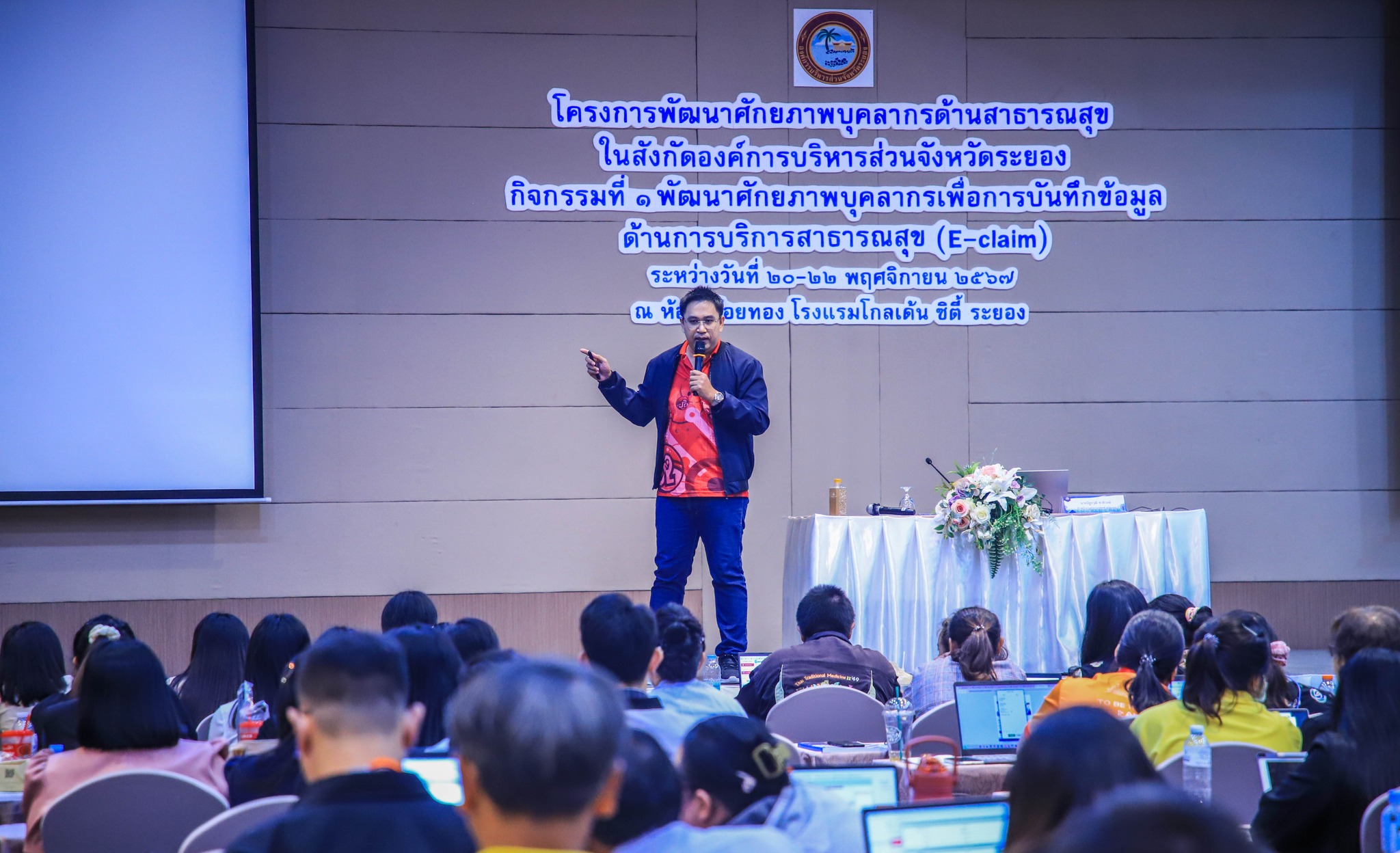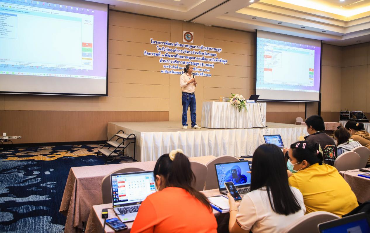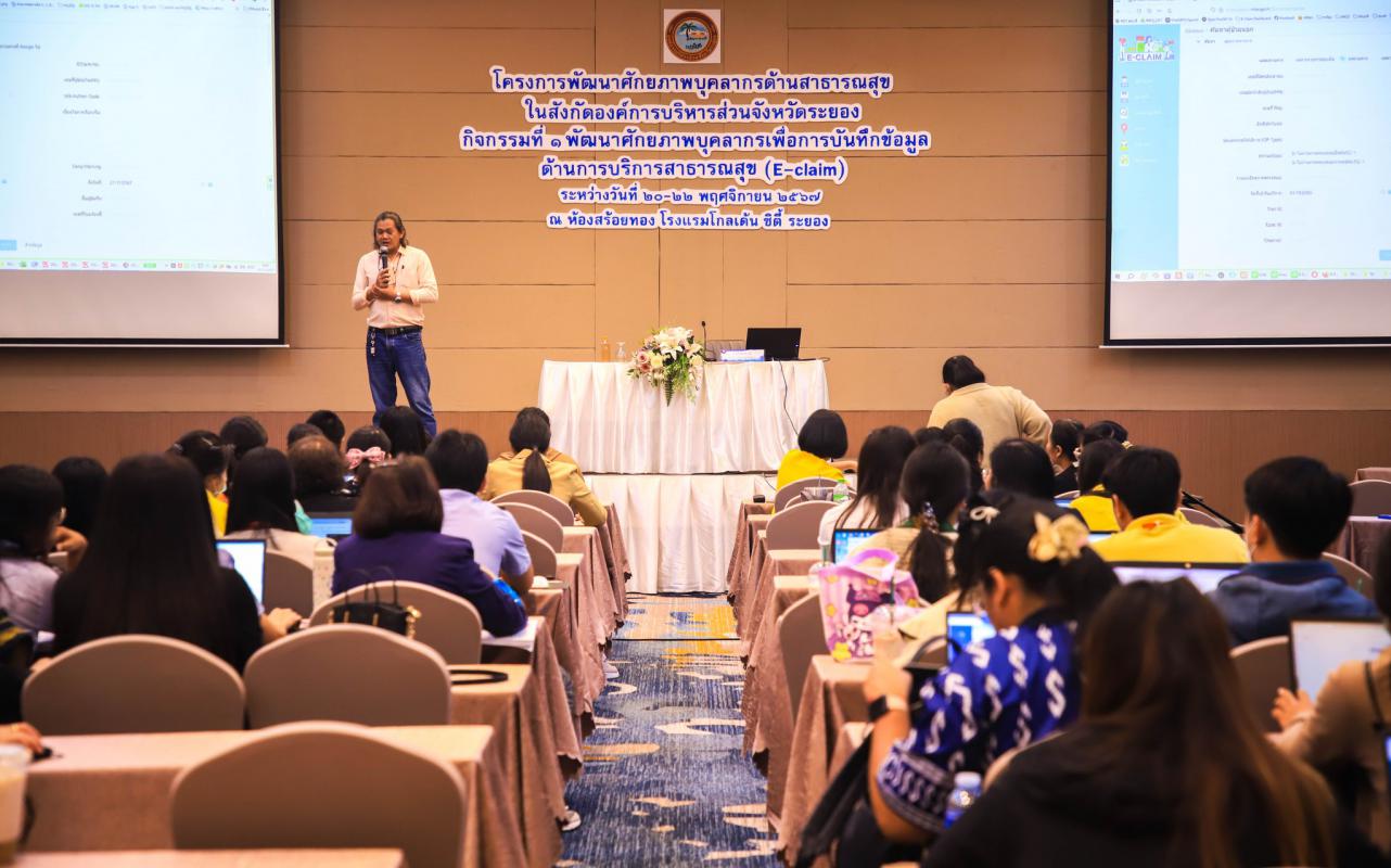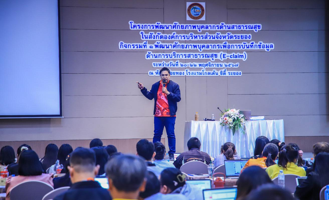 วันที่ 21 พฤศจิกายน 2567 กองสาธารณสุข จัดอบรมเชิงปฏิบัติการ “โครงการพัฒนาศักยภาพบุคลากรเพื่อการบันทึกข้อมูลด้านการบริการสาธารณสุข (E-claim) ณ โรงแรมโกลเด้น ซิตี้ ระยอง โดยมีเจ้าหน้าที่ด้านสาธารณสุข ประจำโรงพยาบาลส่งเสริมสุขภาพตำบล ในสังกัดองค์การบริหารส่วนจังหวัดระยอง สาขาสหวิชาชีพพยาบาล แพทย์แผนไทย นักกายภาพบำบัด นักวิชาการสาธารณสุข จำนวน 200 คน