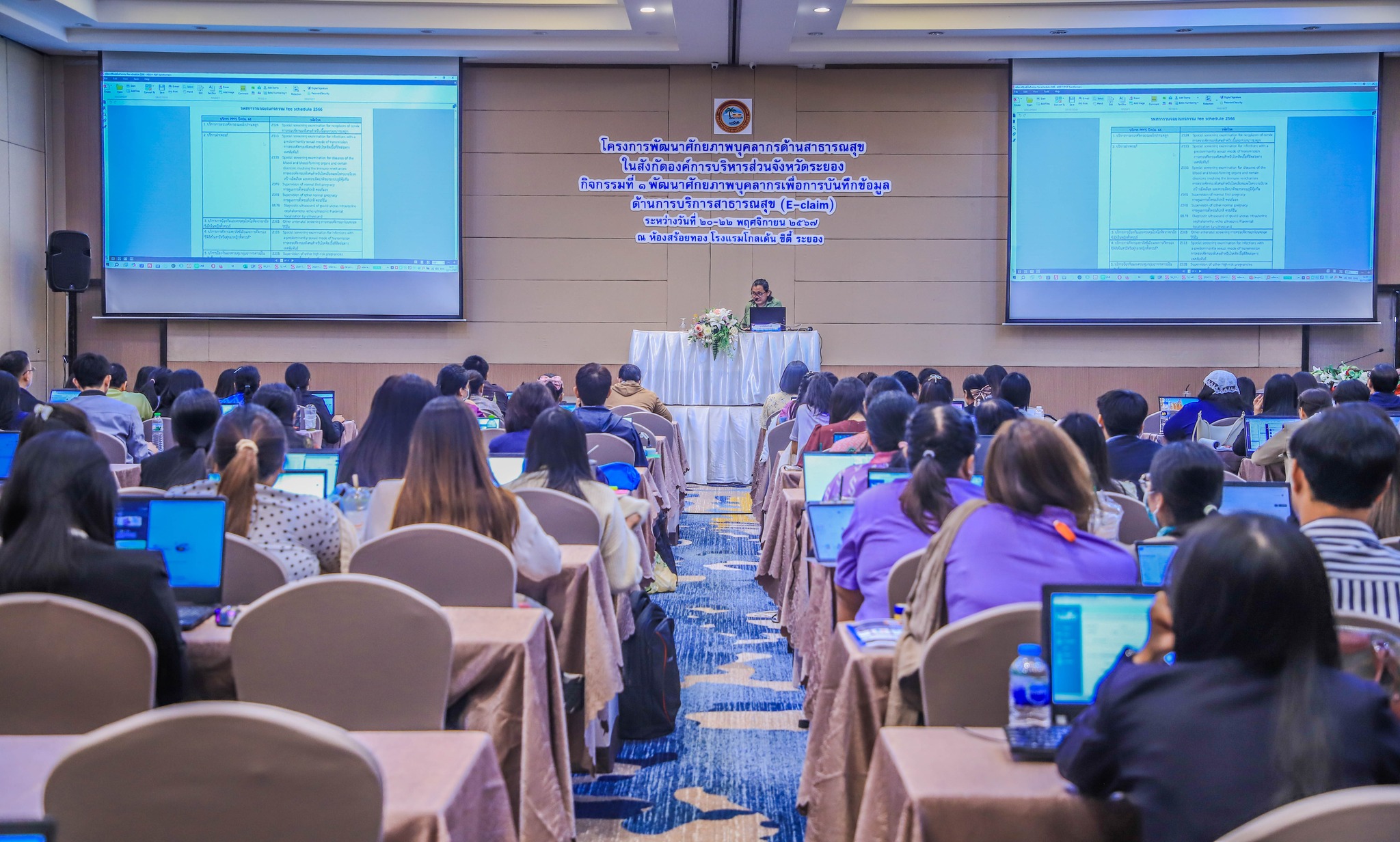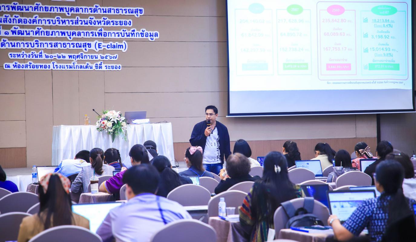 วันที่ 22 พฤศจิกายน 2567 กองสาธารณสุข จัดอบรมเชิงปฏิบัติการ “โครงการพัฒนาศักยภาพบุคลากรเพื่อการบันทึกข้อมูลด้านการบริการสาธารณสุข (E-claim) โดยมีเจ้าหน้าที่ด้านสาธารณสุข ประจำโรงพยาบาลส่งเสริมสุขภาพตำบล ในสังกัดองค์การบริหารส่วนจังหวัดระยอง สาขาสหวิชาชีพพยาบาล แพทย์แผนไทย นักกายภาพบำบัด นักวิชาการสาธารณสุข จำนวน 200 คน และได้จัดโครงการนี้ระหว่างวันที่ 20 – 22 พฤศจิกายน 2567 โดยเข้าร่วมอบรม ณ โรงแรมโกลเด้น ซิตี้ ระยอง