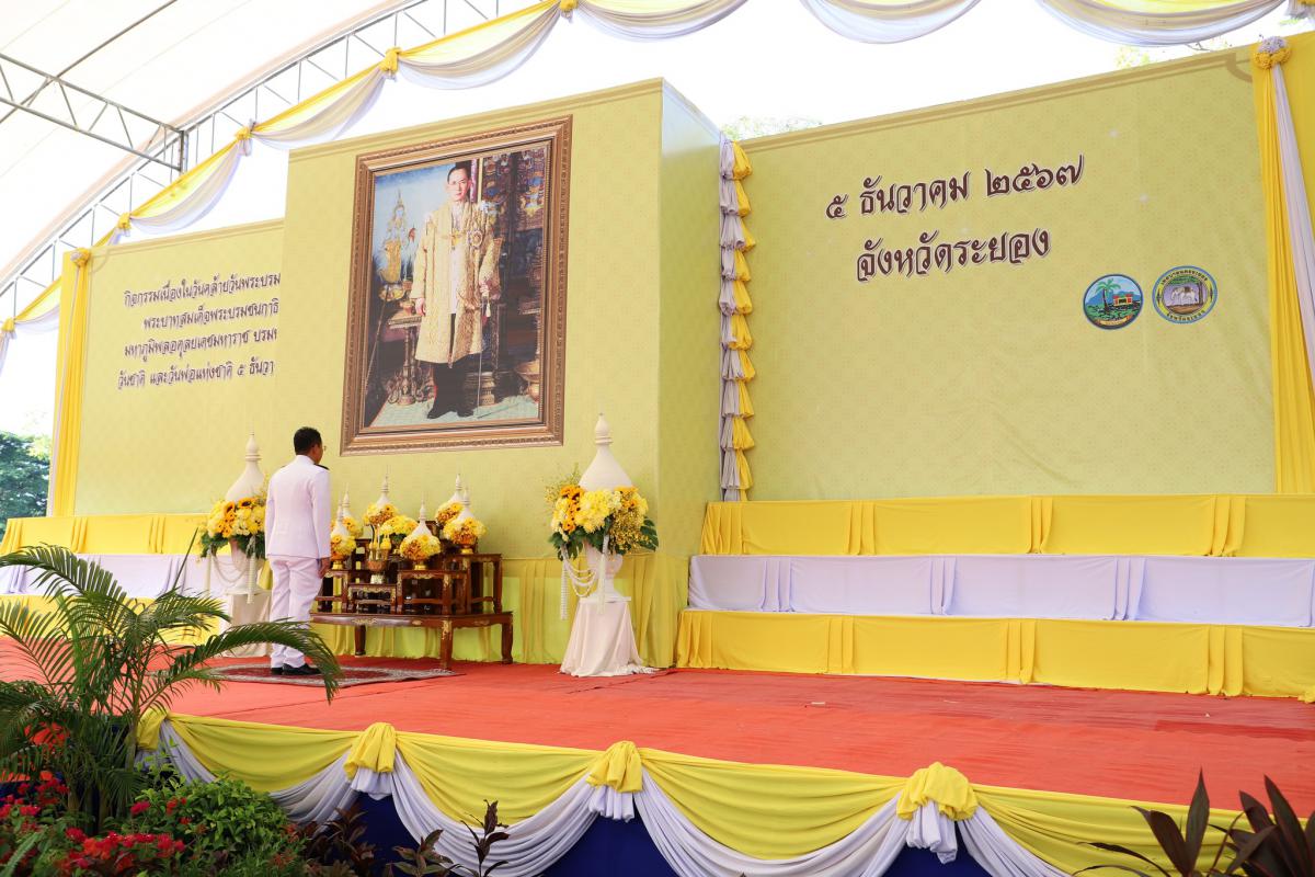 วันที่ 5 ธันวาคม 2567 เวลา 07.30 น. นายสมเกียรติ ยุพาพิน รองปลัดองค์การบริหารส่วนจังหวัดระยอง พร้อมด้วย หัวหน้าส่วนราชการ และข้าราชการอบจ.ระยอง เข้าร่วมพิธีเจริญพระพุทธมนต์และทำบุญตักบาตรถวายพระราชกุศล พระสงฆ์และสามเณร จำนวน 89 รูป และพิธีวางพานพุ่มดอกไม้ถวายราชสักการะหน้าพระบรมฉายาลักษณ์พระบาทสมเด็จพระบรมชนกาธิเบศร มหาภูมิพลอดุลยเดชมหาราช บรมนาถบพิตร เนื่องในวันคล้ายวันพระบรมราชสมภพพระบาทสมเด็จพระบรมชนกาธิเบศร มหาภูมิพลอดุลยเดชมหาราช บรมนาถบพิตร วันชาติ และวันพ่อแห่งชาติ 5 ธันวาคม 2567 โดยมีนายไตรภพ วงศ์ไตรรัตน์ ผู้ว่าราชการจังหวัดระยอง เป็นประธานในพิธี ณ บริเวณสนามสวนศรีเมือง อำเภอเมืองระยอง จังหวัดระยอง