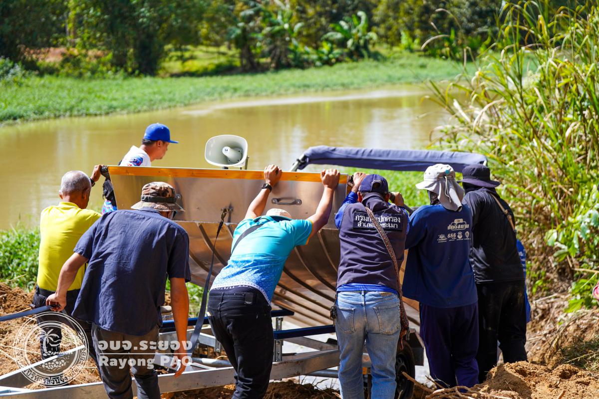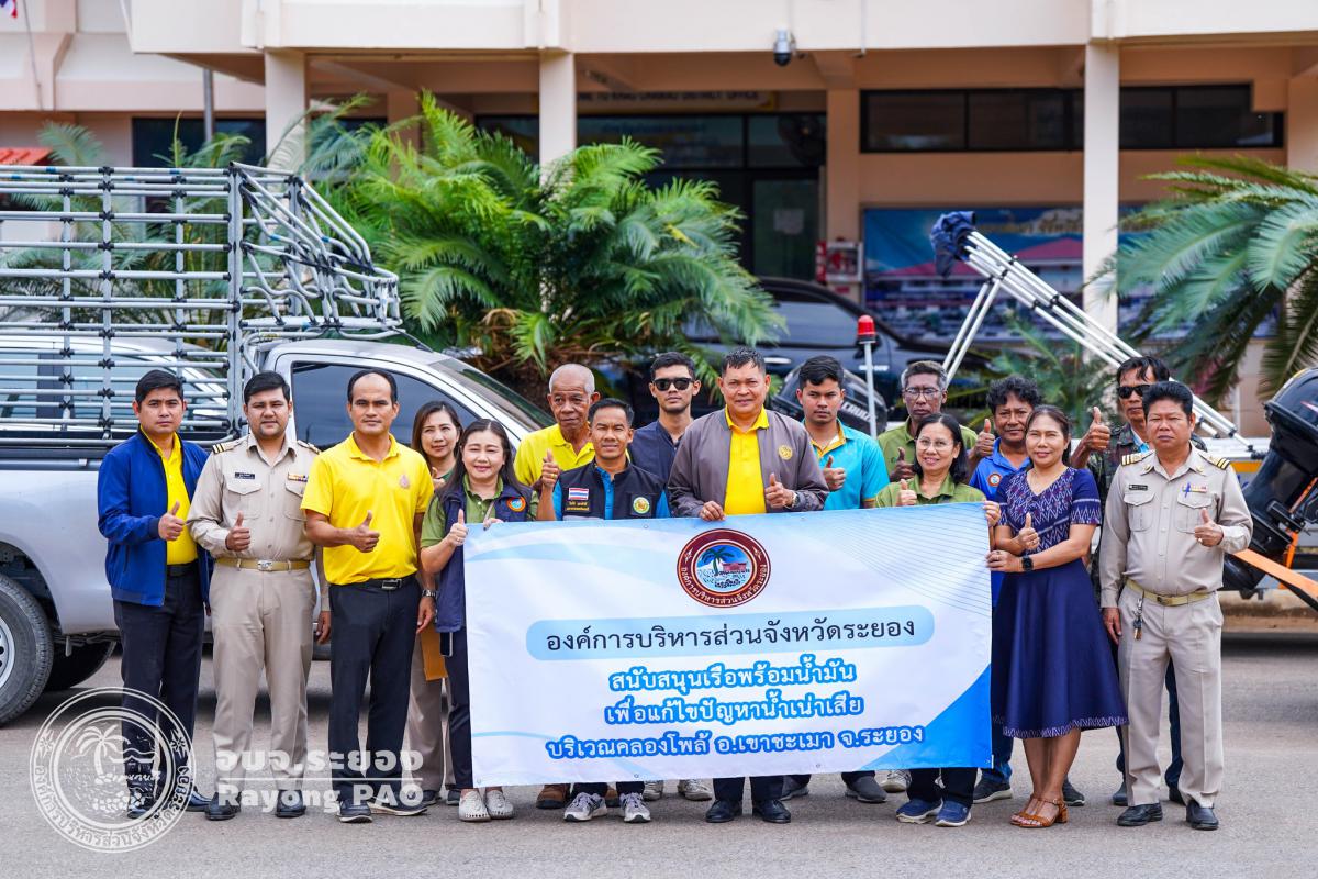 อบจ.ระยองร่วมสนับสนุนเรือพร้อมน้ำมันเชื้อเพลิง เพื่อบำบัดน้ำเน่าเสีย