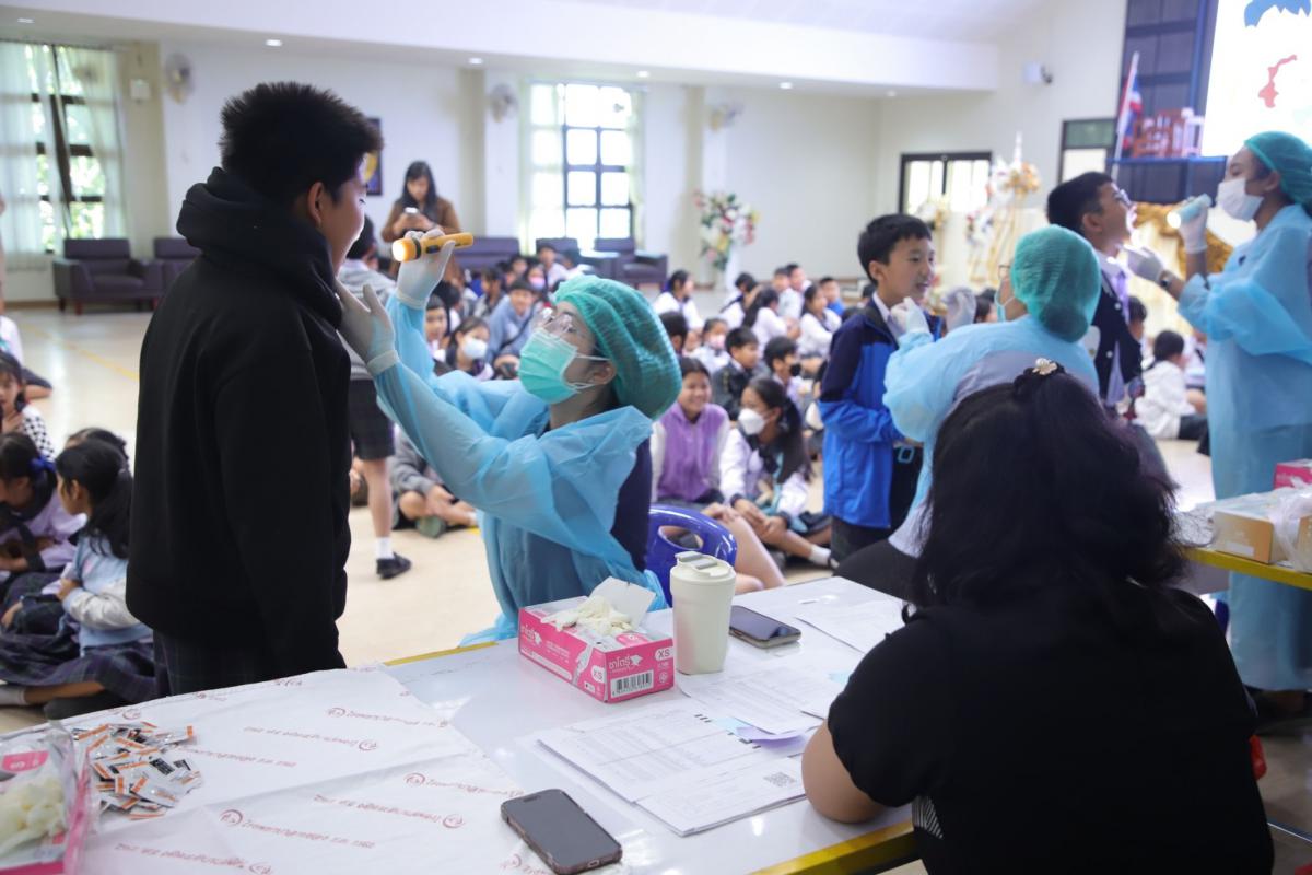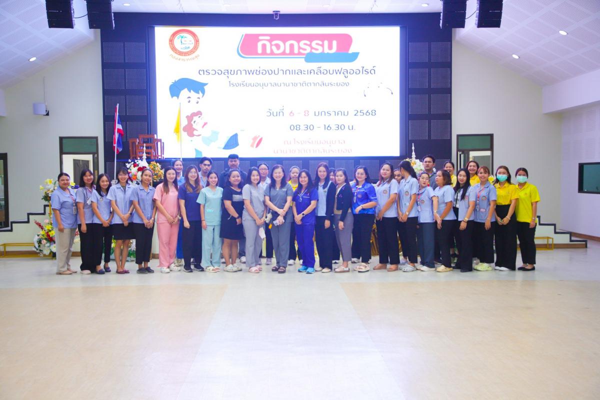 วันที่ 6 มกราคม 2568 เวลา 08.30 น. งานอนามัยโรงเรียน ฝ่ายส่งเสริมสาธารณสุข กองสาธารณสุข “จัดกิจกรรมตรวจสุขภาพช่องปากและเคลือบฟลูออไรด์ โรงเรียนอนุบาลนานาชาติตากสินระยอง” ณ ห้องประชุมอาคารตากสิน 2 ชั้น 4 โรงเรียนอนุบาลนานาชาติตากสินระยอง โดยมีกิจกรรมตรวจสุขภาพช่องปากและเคลือบฟลูออไรด์ ก็เพื่อให้เด็กนักเรียนได้รับการคัดกรองสุขภาพของช่องปาก เพื่อป้องกันการเกิดโรคทางทันตกรรม และเพื่อให้นักเรียนได้รับการส่งเสริมความรู้ในการดูแลสุขภาพช่องปาก โดยมีเจ้าหน้าที่ด้านสาธารณสุข และพยาบาลวิชาชีพ จากโรงพยาบาลระยอง โรงพยาบาลส่งเสริมสุขภาพตำบลในสังกัด อบจ.ระยอง และเจ้าหน้าที่พยาบาลจากเทศบาลตำบลเชิงเนิน ทำหน้าที่ดูแลฟันและช่องปากให้เด็กๆ
