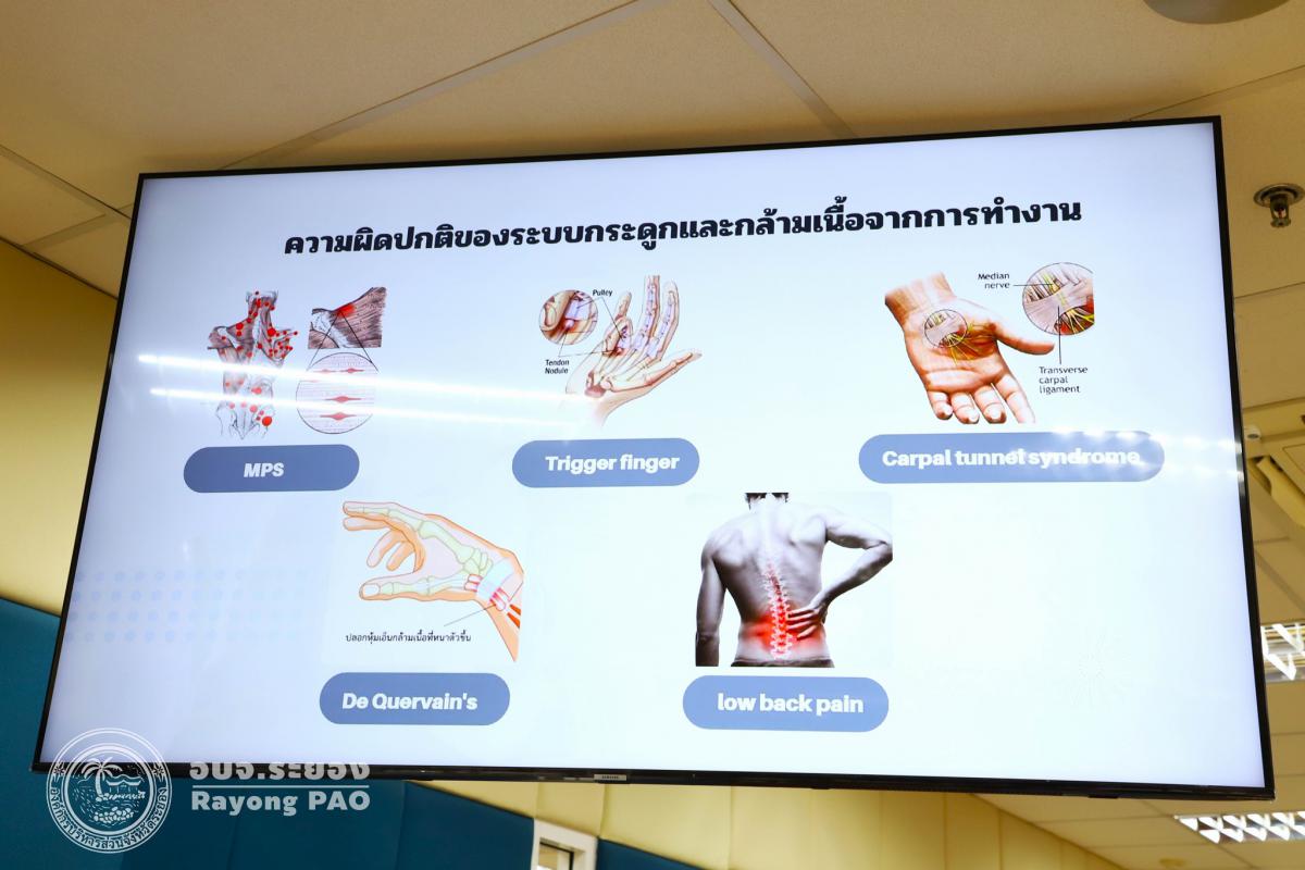 ซึ่งมีวัตถุประสงค์เพื่อสร้างความตระหนักในการเปลี่ยนพฤติกรรมที่เหมาะสมและลดความเสี่ยงต่อการเกิดออฟฟิศซินโดรมของบุคลากรในสังกัดองค์การบริหารส่วนจังหวัดระยอง