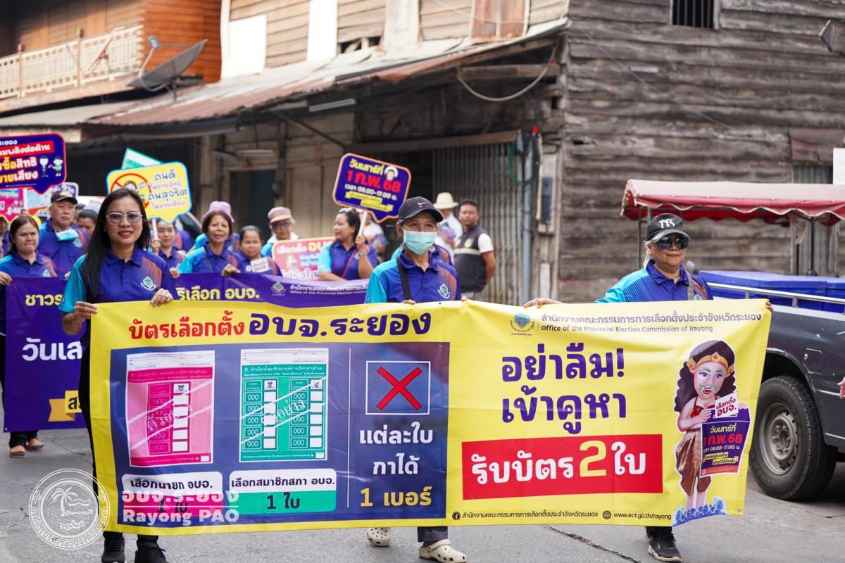 วันที่ 24 มกราคม 2568 เวลา 16.00 น. เจ้าหน้าที่จากองค์การบริหารส่วนจังหวัดระยอง ลงพื้นที่รณรงค์การเลือกตั้งสมาชิกสภาองค์การบริหารส่วนจังหวัดระยอง และนายกองค์การบริหารส่วนจังหวัดระยอง ในบริเวณหน้าที่ว่าการอำเภอแกลงหลังเก่า ตลาดสามย่าน และพื้นที่บริเวณโดยรอบ เพื่อเป็นการประชาสัมพันธ์เชิญชวน และรณรงค์ให้ประชาชนออกไปใช้สิทธิเลือกตั้งในแต่ละเขตตามที่อยู่ทะเบียนบ้าน ในวันเสาร์ที่ 1 กุมภาพันธ์ 2568 เวลา 08.00 – 17.00 น.