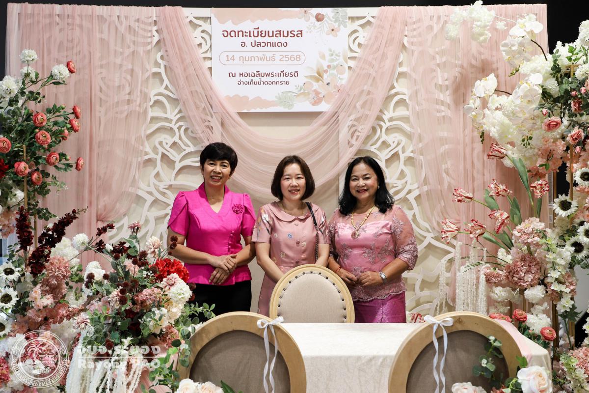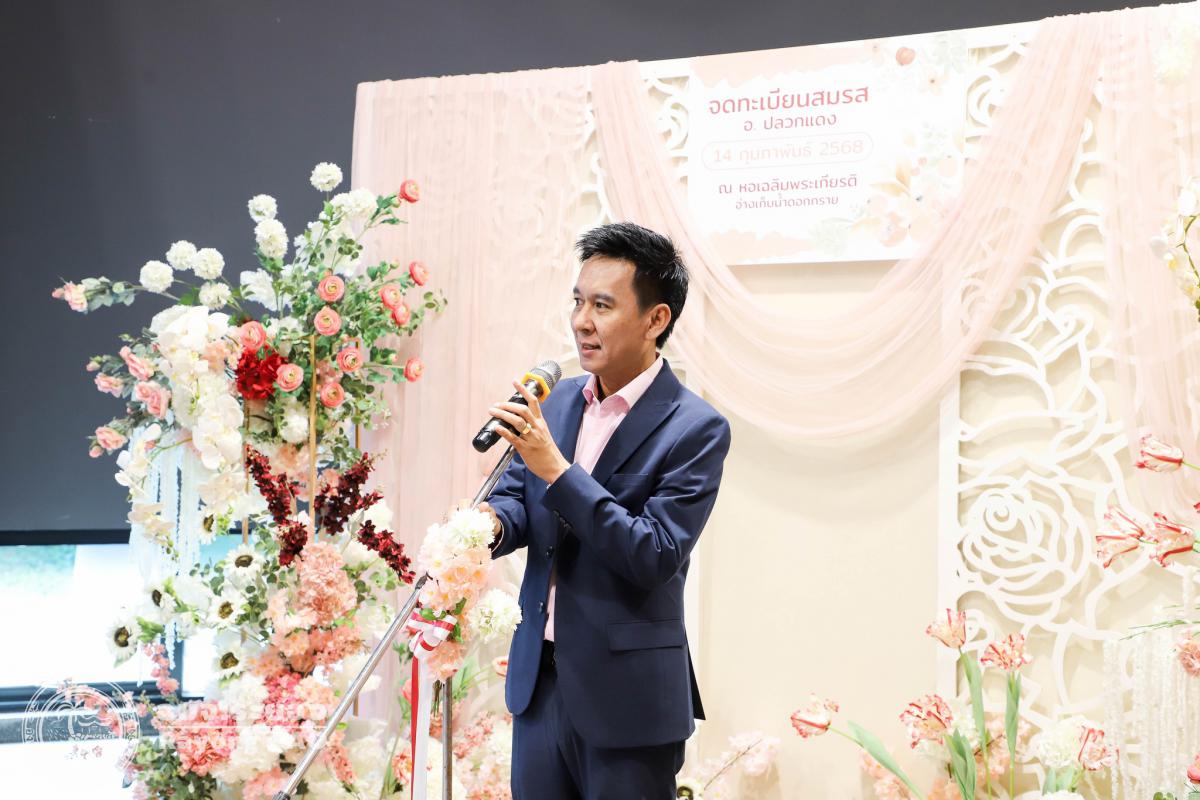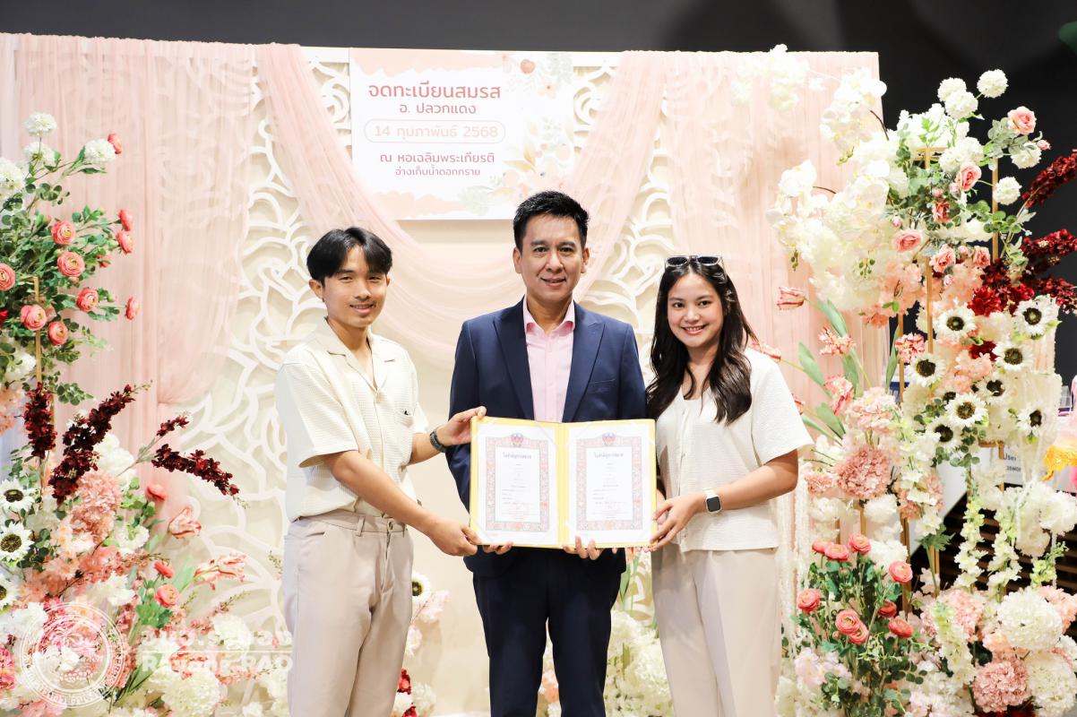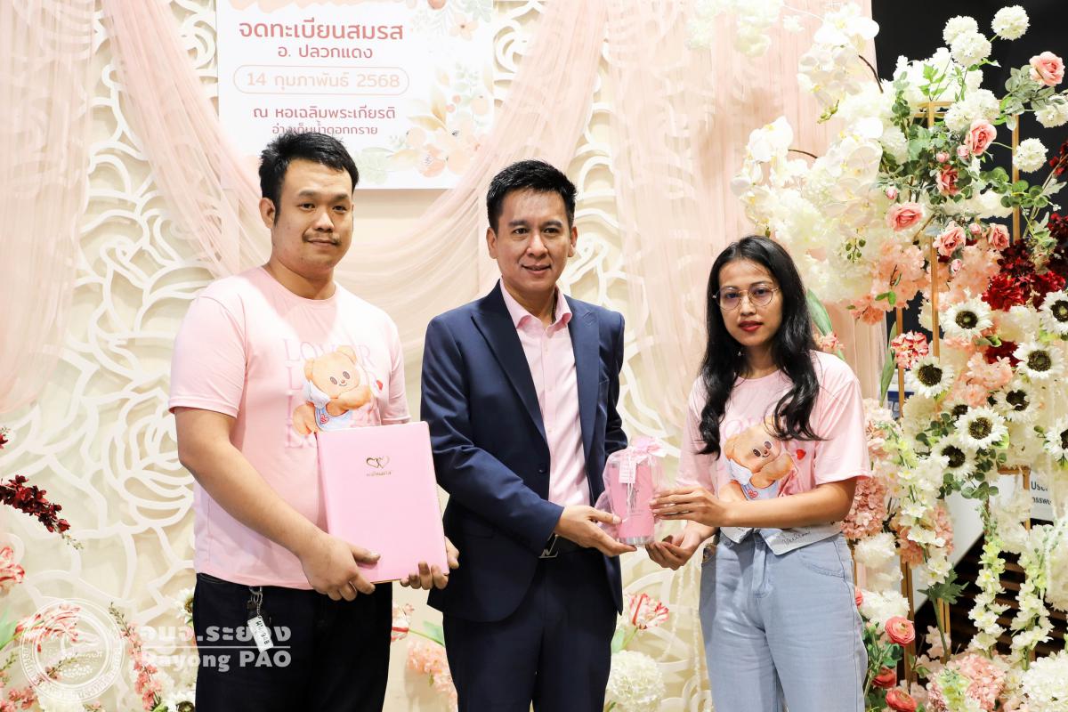 วันที่ 14 กุมภาพันธ์ 2568 นางสาวสุธัญญา สุขรมย์ รองปลัดองค์การบริหารส่วนจังหวัดระยอง พร้อมด้วย คณะผู้บริหาร หัวหน้าส่วนราชการ และผู้ที่เกี่ยวข้องเข้าร่วมโครงการจดทะเบียนสมรสเนื่องในวันแห่งความรัก (Valentine’s Day 2025) โดยมีนายสกนธ์ กรกฎ นายอำเภอปลวกแดง เป็นประธานเปิดงานให้กับคู่บ่าว-สาว ที่ได้ลงทะเบียนไว้ ซึ่งมีนางกฤษณา ช้างหัวหน้า ปลัดอำเภอหัวหน้ากลุ่มงานทะเบียนและบัตรอำเภอปลวกแดงเป็นผู้กล่าวรายงาน ภายในงานมีกิจกรรมการจดทะเบียนสมรส, การถ่ายภาพพร้อมมอบของที่ระลึก และมอบของรางวัลพิเศษแก่ผู้ที่มาจดทะเบียนเพื่อความเป็นสิริมงคล ซึ่งภายในงานมีคู่มาจดทะเบียนสมรส 14 คู่ ณ หอเฉลิมพระเกียรติ อ่างเก็บน้ำดอกกราย อำเภอปลวกแดง จังหวัดระยอง
