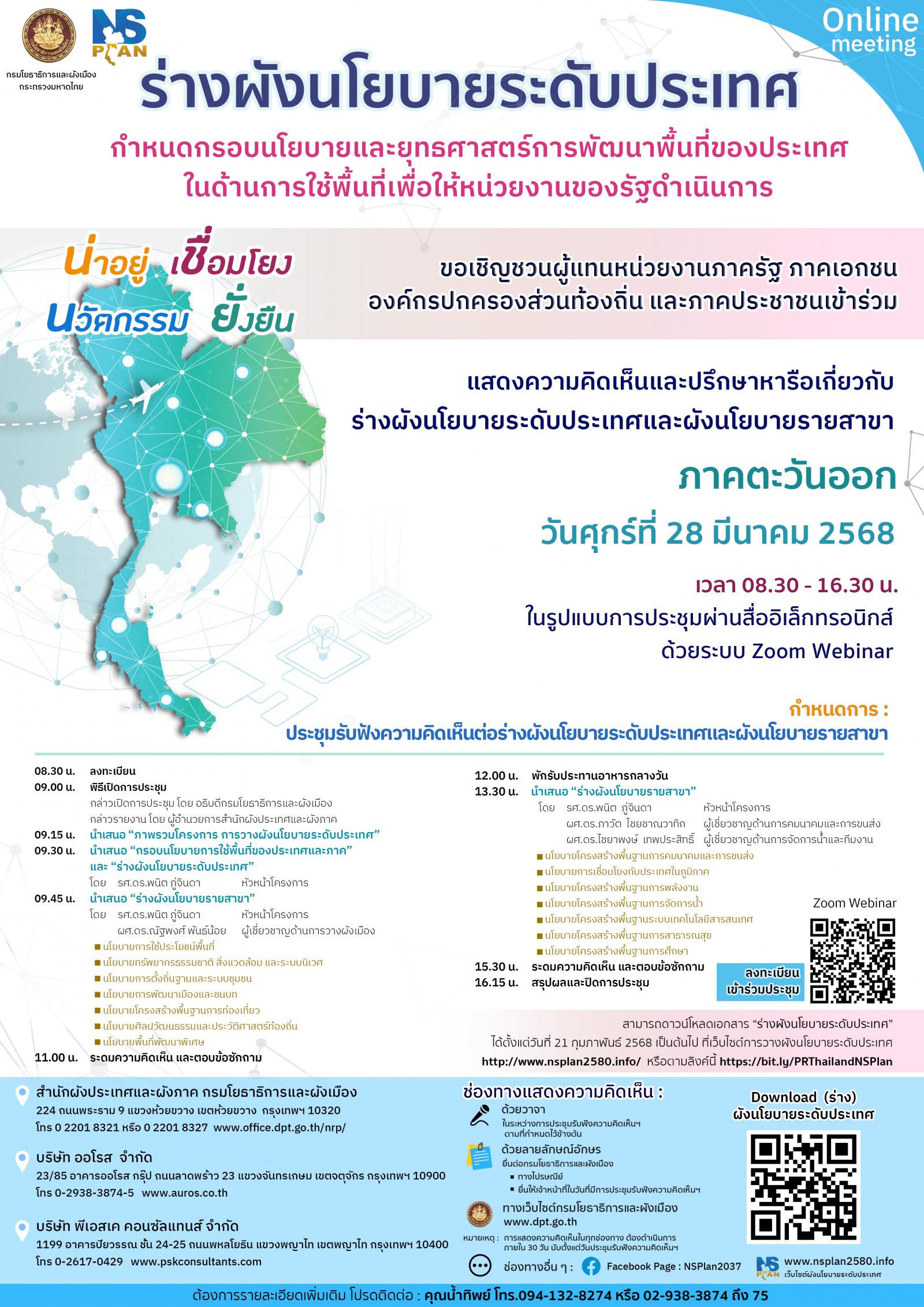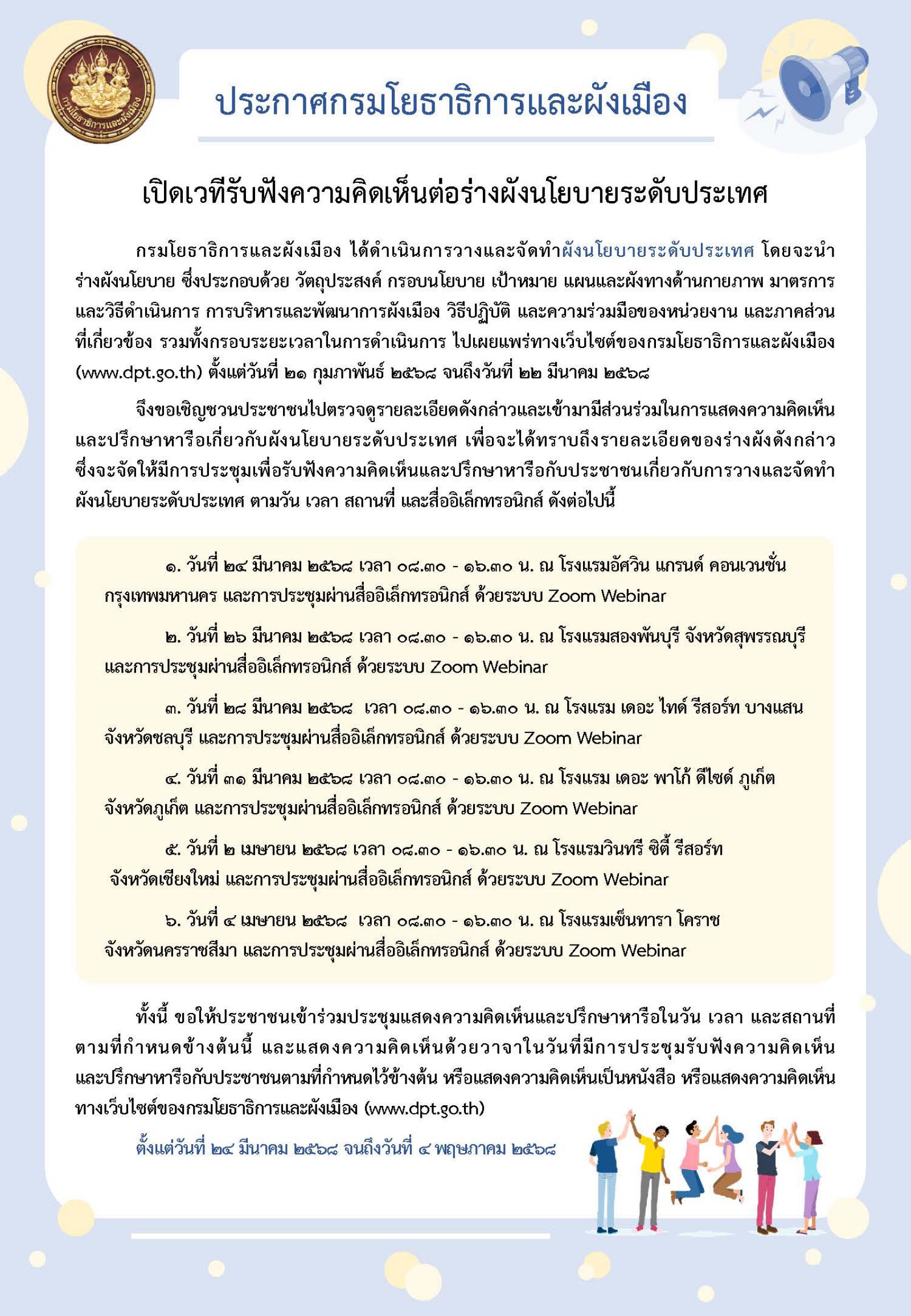 การประชุมรับฟังความคิดเห็น การปรึกษาหารือ และการมีส่วนร่วมของประชาชนต่อร่างผังนโยบายระดับประเทศ
