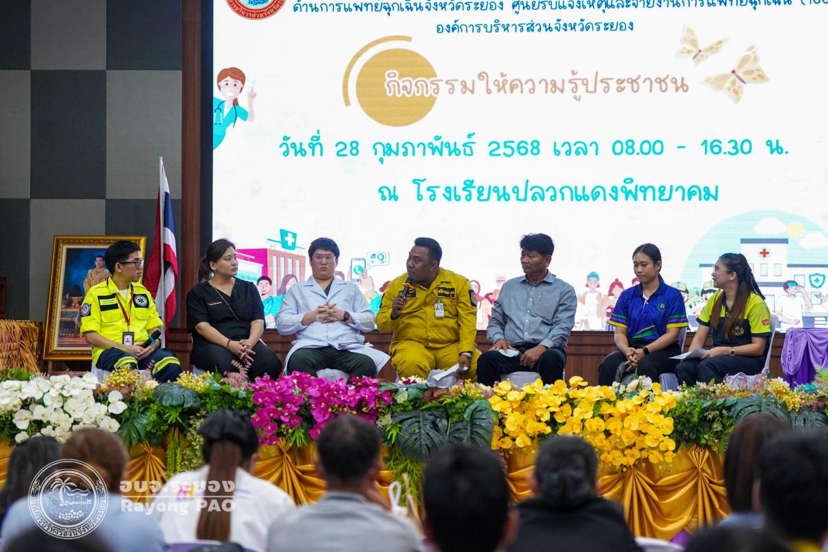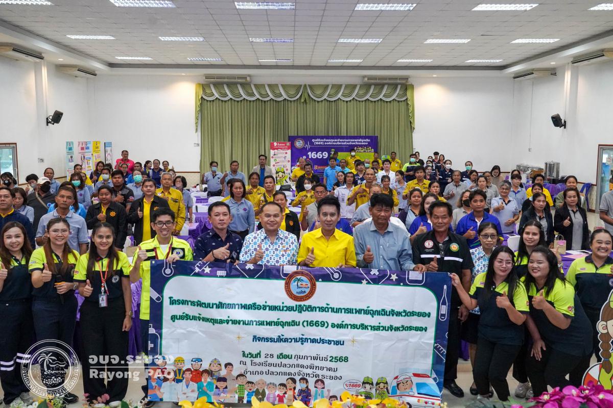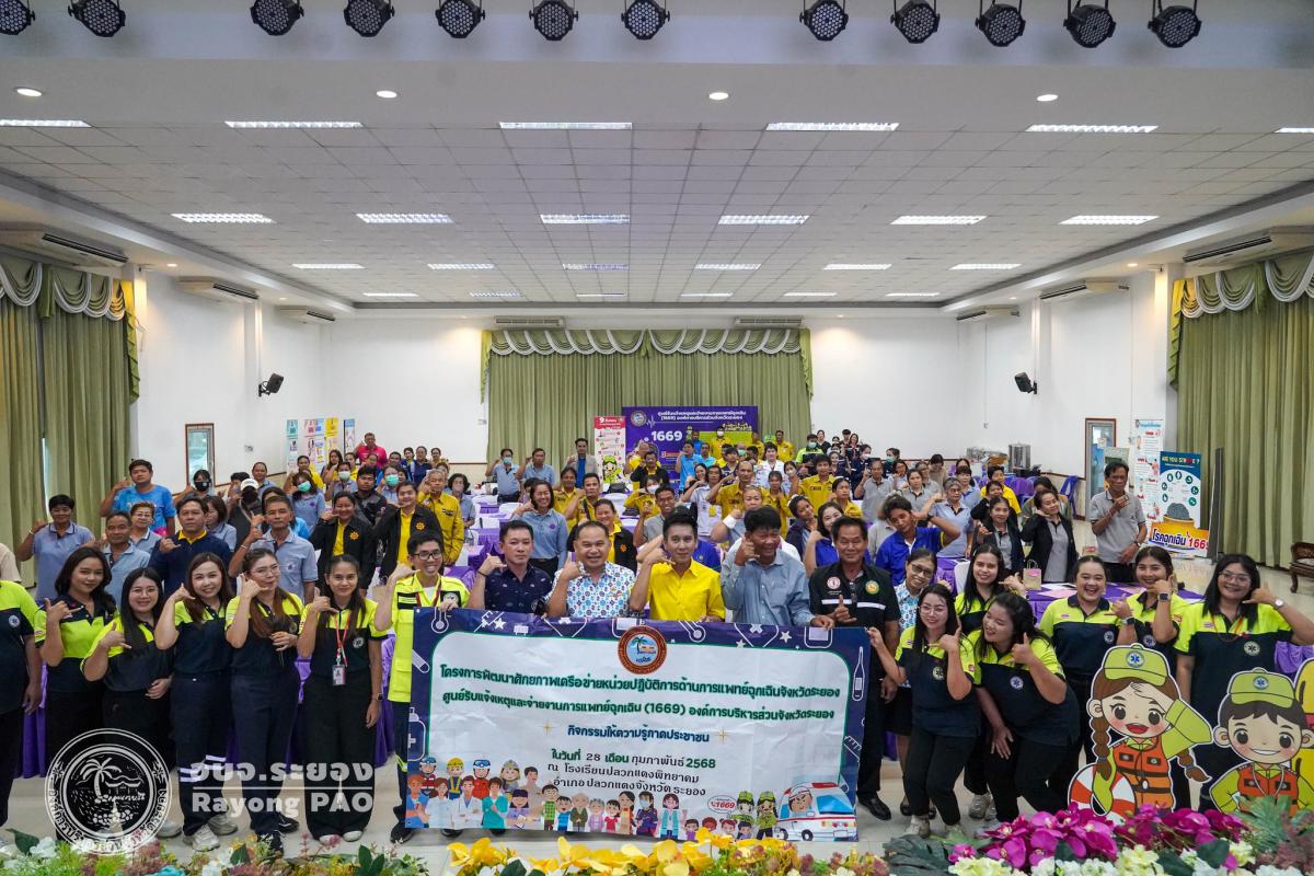 วันที่ 28 กุมภาพันธ์ 2568 เวลา 08.00 น. กองสาธารณสุข จัดโครงการพัฒนาศักยภาพเครือข่ายหน่วยปฏิบัติงานด้านการแพทย์ฉุกเฉินจังหวัดระยอง ศูนย์รับแจ้งเหตุและจ่ายงานการแพทย์ฉุกเฉิน (1669) องค์การบริหารส่วนจังหวัดระยอง ซึ่งจะมีการอบรมภาคประชาชนของพื้นที่ 8 อำเภอ ระหว่างเดือนกุมภาพันธ์ - มีนาคม 2568 ซึ่งพิธีเปิดโครงการฯได้รับเกียรติจาก นายสกนธ์ กรกฎ นายอำเภอปลวกแดง เป็นประธานในพิธีเปิด โดยมีนางสาวอภิรดี โชนิรัตน์ หัวหน้าฝ่ายบริการทางการแพทย์ เป็นผู้กล่าววัตถุประสงค์ของการจัดโครงการฯในครั้งนี้ โดยกิจกรรมภายในโครงการฯได้มีการบรรยายจาก นพ.ภคพล เอี่ยมไพบูลย์พันธ์ โรงพยาบาลระยอง ในหัวข้อ ”การประเมินและคัดแยกผู้ป่วยฉุกเฉินกับภาวะฉุกเฉินที่พบบ่อยและการดูแลเบื้องต้น“ การเสวนาในหัวข้อ “เสียงสะท้อนการแพทย์ฉุกเฉินในปัจจุบันสู่อนาคตที่มุ่งหมาย” และกิจกรรมแบ่งกลุ่ม ณ โรงเรียนปลวกแดงพิทยาคม อำเภอปลวกแดง จังหวัดระยอง