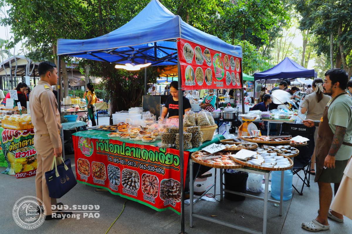 ภาพบรรยากาศ “ตลาดประชารัฐ ท้องถิ่นสุขใจ วิถีชาวระยอง” ในวันศุกร์ที่ 14 มีนาคม 2568