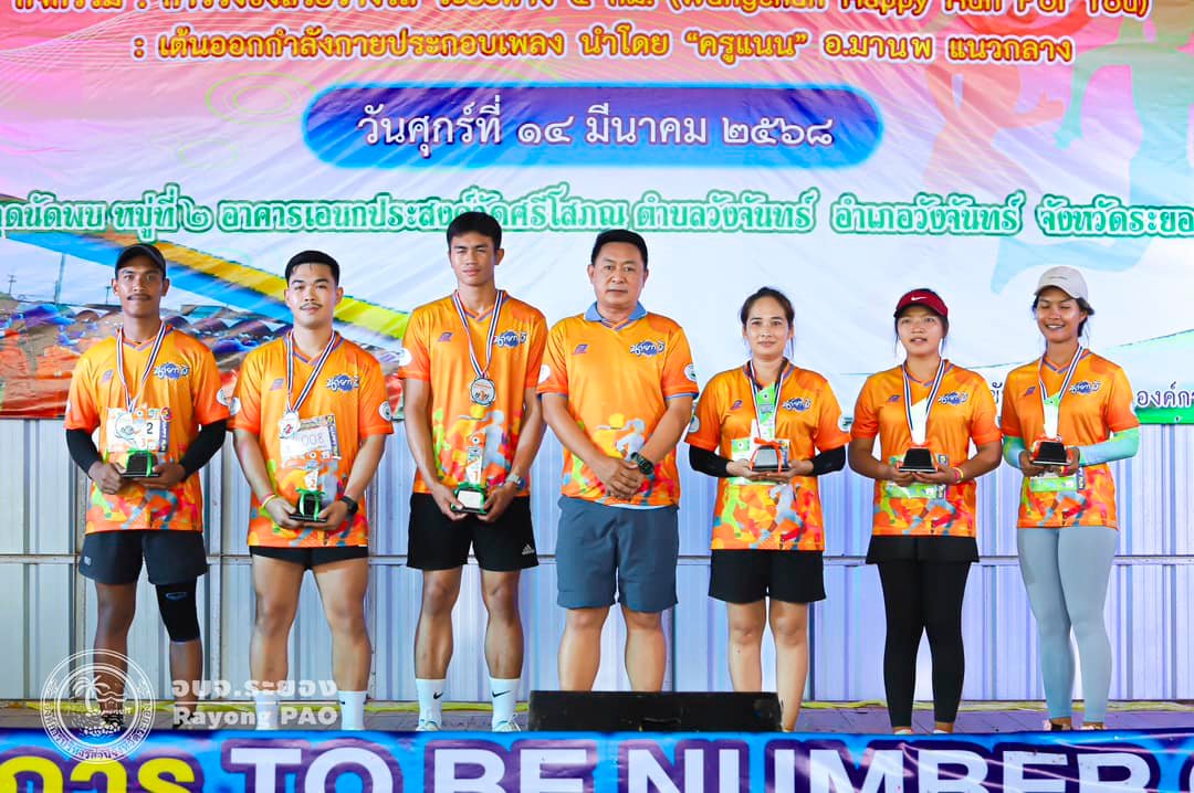 วันที่ 14 มีนาคม 2568 เวลา 17.00 น. นายประสานต์ พฤกษาชาติ รองนายกองค์การบริหารส่วนจังหวัดระยอง (2) เป็นประธานพิธีเปิดโครงการ TO BE NUMBER ONE ส่งเสริมการออกกำลังกายตำบลวังจันทร์ สร้าง 3 สุข (สุขกาย สุขใจ สุขภาพดี) โดยมีนางภาวิณี ชาวไชย นายกองค์การบริหารส่วนตำบลวังจันทร์ พร้อมด้วย นายมนัส สมศักดิ์ สมาชิกสภา เขต 1 อำเภอวังจันทร์, นายคเณศวร เกษอินทร์ นายอำเภอวังจันทร์, หน่วยงานภาครัฐ ภาคเอกชน ประชาชน ผู้เข้าร่วมกิจกรรม และเจ้าหน้าที่ที่เกี่ยวข้องเข้าร่วมงานอย่างพร้อมเพรียงกัน โดยวัตถุประสงค์ของการจัดโครงการในครั้งนี้เพื่อให้เยาวชนและประชาชนตระหนักถึงความสำคัญของการออกกำลังกาย โดยใช้กีฬาเป็นสื่อในการพัฒนาร่างกายและจิตใจ นอกจากนี้ยังสามารถใช้กิจกรรมกีฬาเป็นหนึ่งในการป้องกันแก้ไขปัญหาสังคมและปัญหายาเสพติด ซึ่งภายในงานมีกิจกรรมเดินวิ่งและกิจกรรมการเต้น จากศิลปิน ครูแนน มานพ แนวกลาง ณ ศาลาเอนกประสงค์วัดศรีโสภณ หมู่ 2 บ้านหนองโพรง ตำบลวังจันทร์ อำเภอวังจันทร์ จังหวัดระยอง