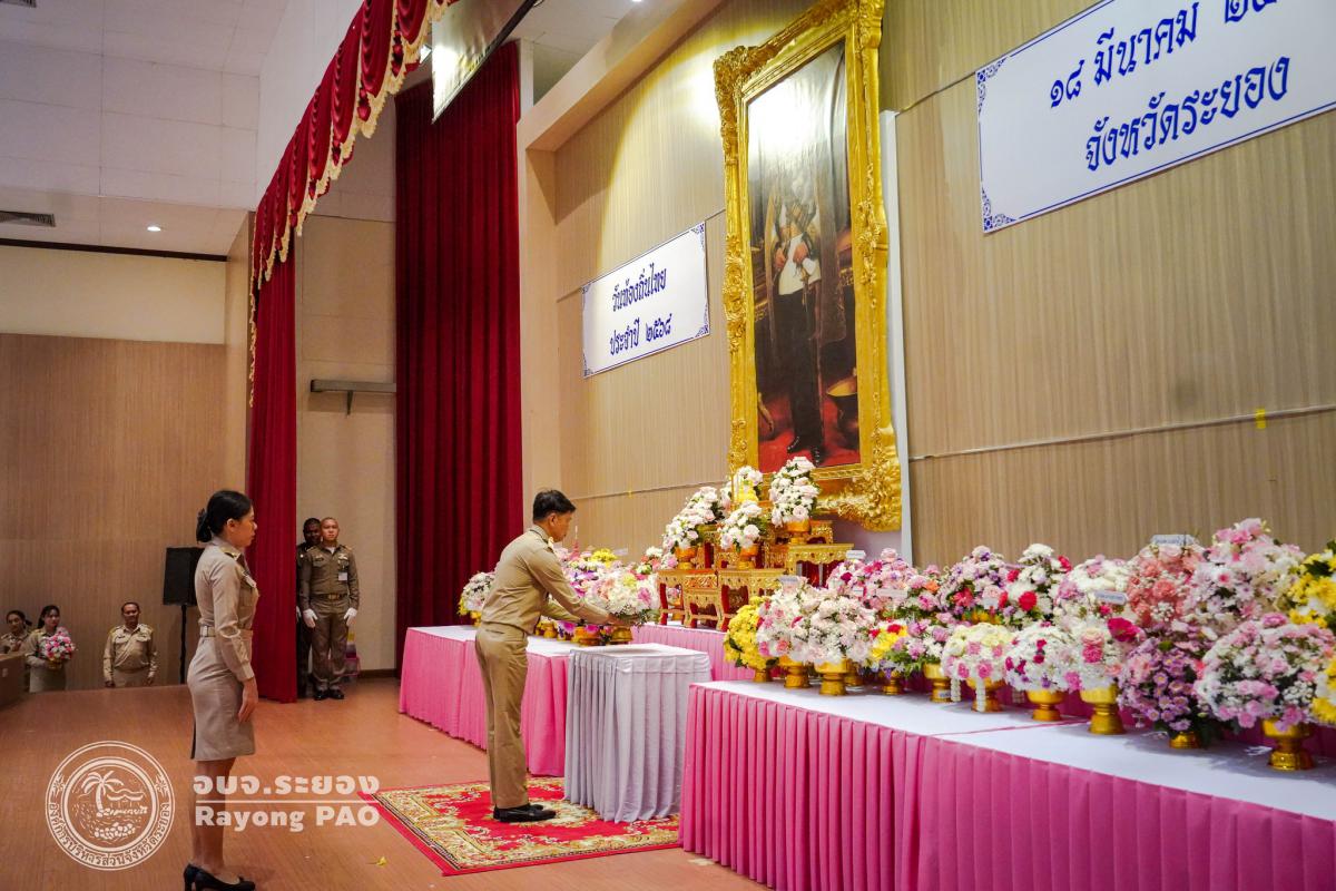 วันที่ 18 มีนาคม 2568 เวลา 07.30 น. ณ หอประชุมศูนย์ราชการจังหวัดระยอง นายเสรี เพ็งสาท รองปลัดองค์การบริหารส่วนจังหวัดระยอง พร้อมด้วย ข้าราชการ พนักงาน ลูกจ้างสังกัดอบจ.ระยอง เข้าร่วมพิธีถวายราชสักการะฯ พระบาทสมเด็จพระจุลจอมเกล้าเจ้าอยู่หัว รัชกาลที่ 5 เนื่องในโอกาส “วันท้องถิ่นไทย ประจำปี 2568” โดยมี นายกัฬชัย เทพวรชัย รองผู้ว่าราชการจังหวัดระยอง เป็นประธานในพิธีนำผู้เข้าร่วมพิธีวางพานพุ่มดอกไม้สดถวายราชสักการะ และกล่าวถวายราชสดุดีน้อมรำลึกถึงพระมหากรุณาธิคุณเบื้องหน้าพระบรมสาทิศลักษณ์ รัชกาลที่ 5 เนื่องในโอกาส “วันท้องถิ่นไทย ประจำปี 2568” เพื่อรำลึกในพระมหากรุณาธิคุณของพระบาทสมเด็จพระจุลจอมเกล้าเจ้าอยู่หัว ทรงมีพระบรมราชโองการให้ยกฐานะตำบลท่าฉลอมขึ้นเป็น “สุขาภิบาลท่าฉลอม” เมื่อวันที่ 18 มีนาคม 2448 ซึ่งเป็นจุดเริ่มต้นของการกระจายอำนาจการปกครองให้ประชาชนในท้องถิ่น