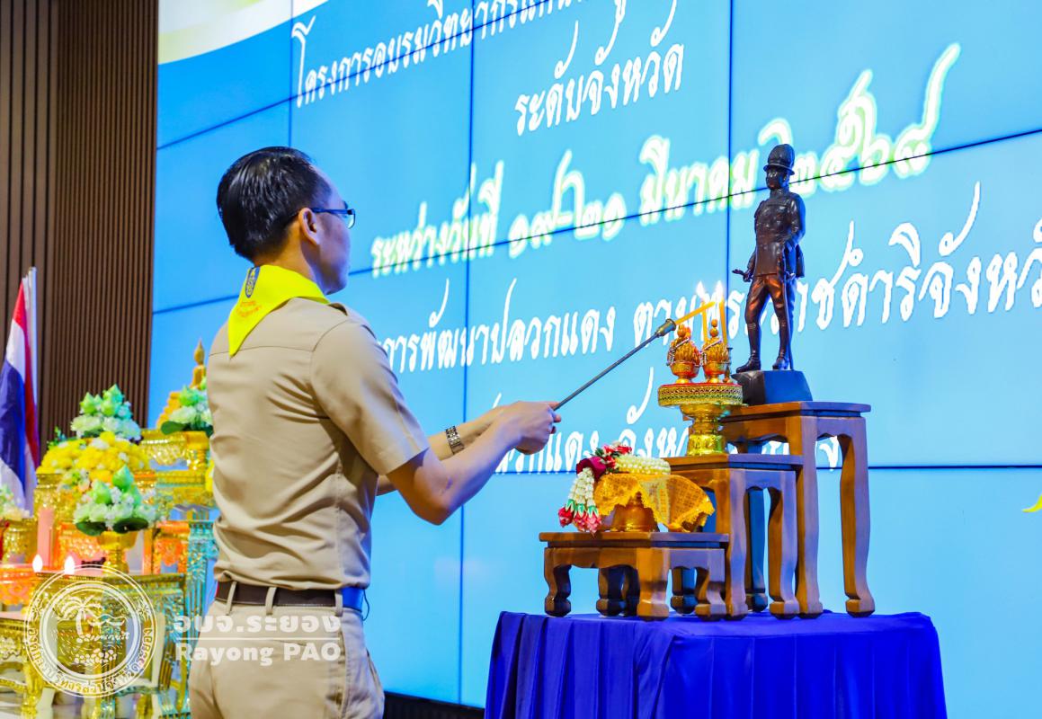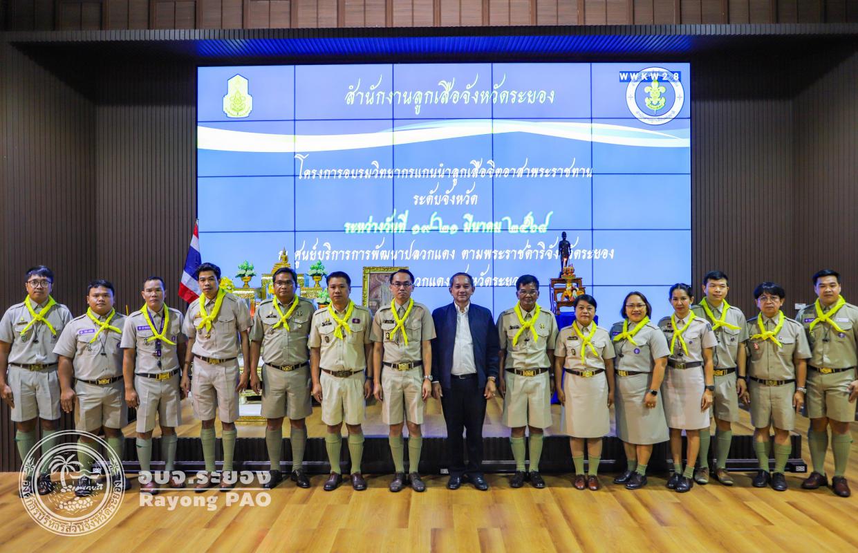 วันที่ 19 มีนาคม 2568 เวลา 09.00 น. นายประสานต์ พฤกษาชาติ รองนายกองค์การบริหารส่วนจังหวัดระยอง ได้เข้าร่วมพิธีเปิดโครงการลูกเสือจิตอาสาพระราชทาน จ.ระยอง โดยสำนักงานลูกเสือจังหวัดระยอง พร้อมด้วย หัวหน้าส่วนราชการ หน่วยงานภาครัฐ ผู้นำชุมชน และผู้ที่เกี่ยวข้องเข้าร่วมพิธีเปิดอย่างพร้อมเพรียง นำโดยนายสุเทพ ธีรัชสกุล ผู้อำนวยการสำนักงานเขตพื้นที่การศึกษาประถมศึกษาระยอง เขต 1 ให้เกียรติเป็นประธานในพิธีเปิด โดยนายอภิชัย ธิณทัพ รองผู้อำนวยการสำนักงานเขตพื้นที่การศึกษาประถมศึกษาระยอง เขต 1 เป็นผู้กล่าววัตถุประสงค์ฯ โดยโครงการจัดขึ้นเพื่อส่งเสริมให้ลูกเสือและบุคลากรทางการลูกเสือน้อมนำโครงการวิทยากรแกนนำลูกเสือจิตอาสาพระราชทานมาเสริมสร้างจิตสำนึกความเป็นพลเมืองที่เข้มแข็งและบำเพ็ญประโยชน์ต่อชุมชนอย่างต่อเนื่องและยั่งยืน โดยการส่งเสริมสร้างจิตสำนึกที่ดีให้ลูกเสือได้ร่วมทำกิจกรรมจิตอาสาบำเพ็ญประโยชน์ มีจิตสาธารณะตามกฎและคำปฏิญาณของลูกเสือและขยายผลโครงการสู่สถานศึกษาต่อไป ณ อาคารปูทะเลย์มหาวิชชาลัย เมืองพระมหาชนก อ่างเก็บน้ำดอกกราย อำเภอปลวกแดง จังหวัดระยอง
