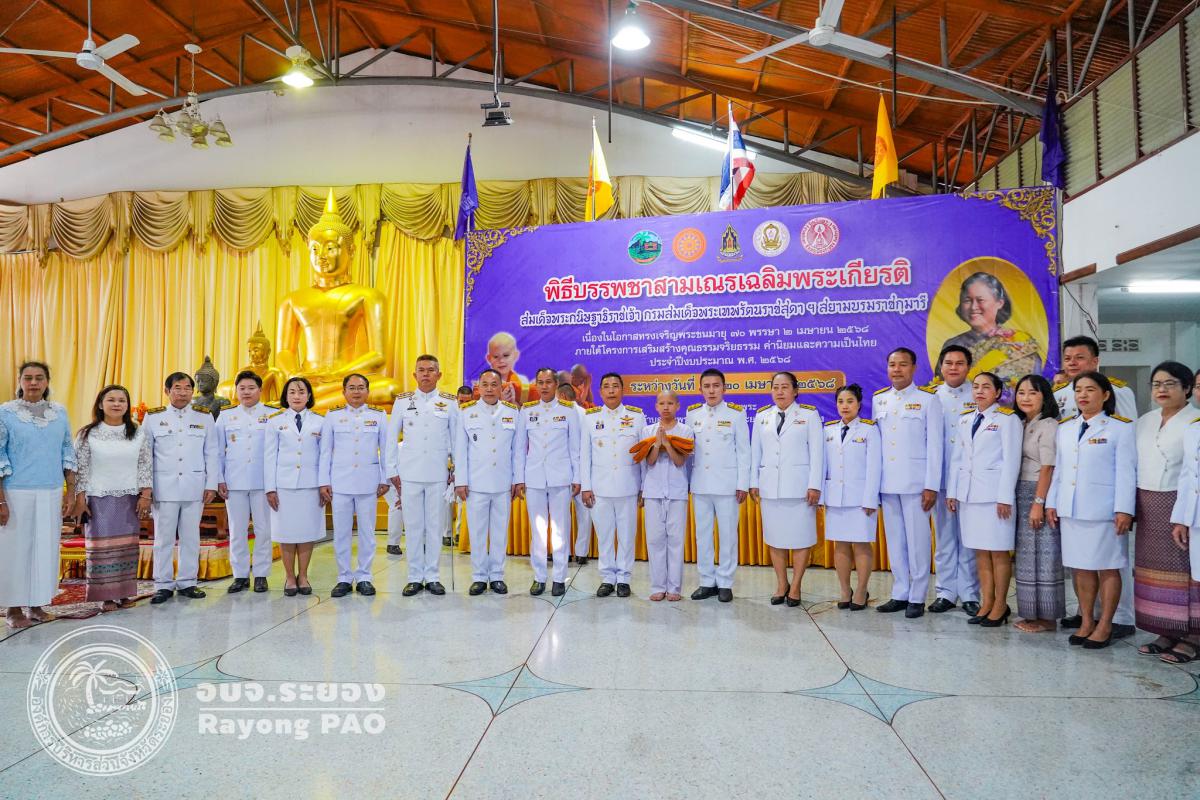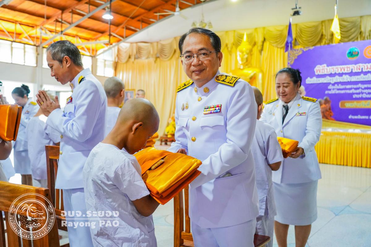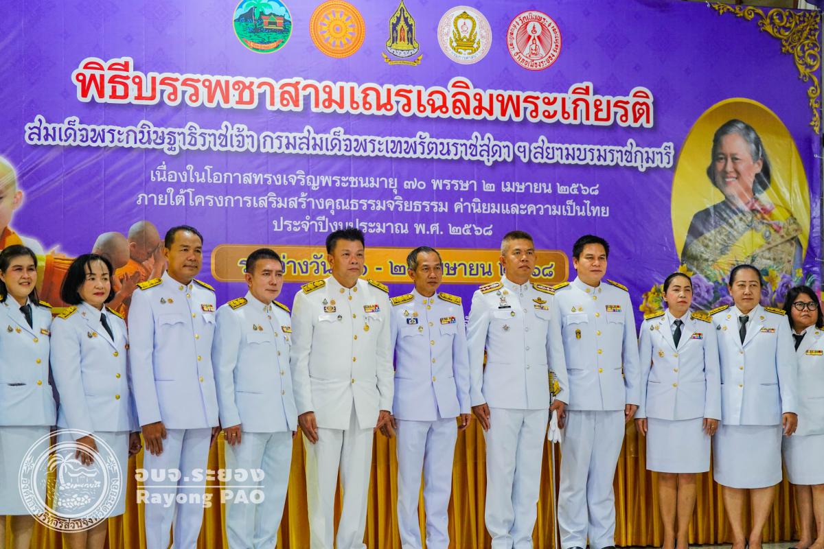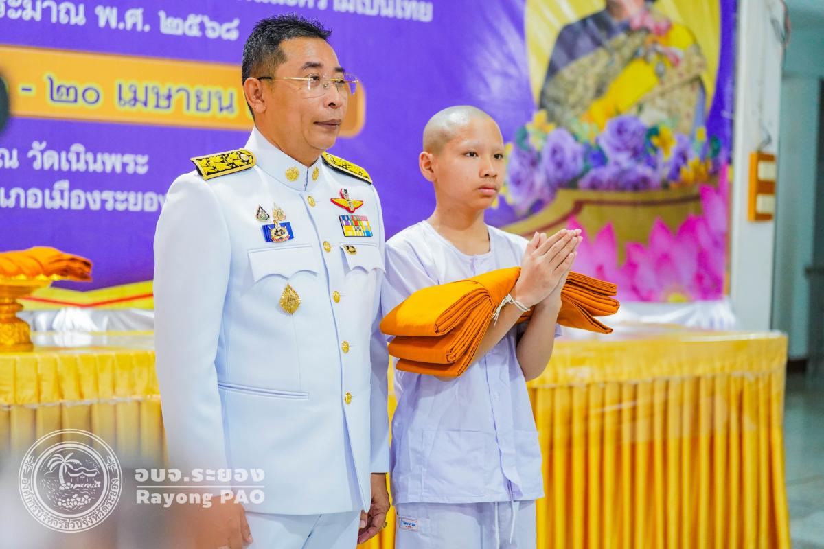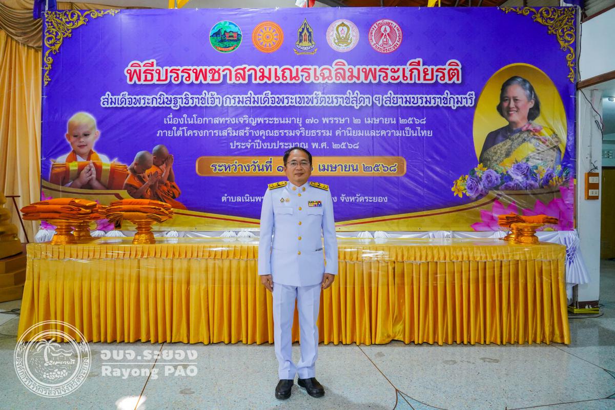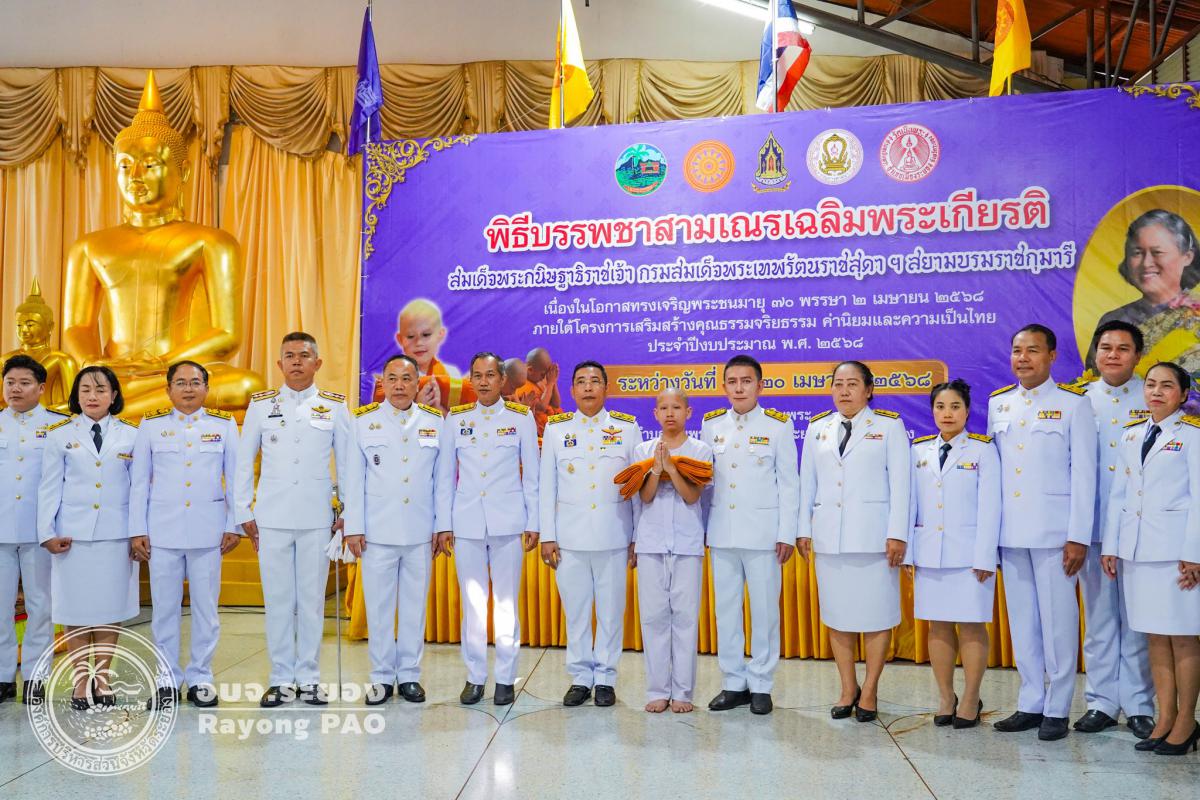 วันที่ 1 เมษายน 2568 เวลา 08.30 น. ณ วัดเนินพระ อำเภอเมือง จังหวัดระยอง นายสุรินทร์ แสงทอง ปลัดองค์การบริหารส่วนจังหวัดระยอง เข้าร่วมกิจกรรมบรรพชาสามเณรเฉลิมพระเกียรติสมเด็จพระกนิษฐาธิราชเจ้า กรมสมเด็จพระเทพรัตนราชสุดาฯ สยามบรมราชกุมารี เนื่องในโอกาสทรงเจริญพระชนมายุ 70 พรรษา ในวันที่ 2 เมษายน 2568 ภายใต้โครงการเสริมสร้างคุณธรรมจริยธรรม ค่านิยมและความเป็นไทย ประจำปีงบประมาณ พ.ศ. 2568 โดยมี นายไตรภพ วงศ์ไตรรัตน์ เป็นประธานในพิธี พร้อมด้วย นายวรวุฒิ ด่านสมพงศ์ วัฒนธรรมจังหวัดระยอง เป็นผู้กล่าวรายงาน โดยกิจกรรมดังกล่าวจัดขึ้นโดยสำนักงานวัฒนธรรมจังหวัดระยอง ภายใต้โครงการเสริมสร้างคุณธรรมจริยธรรม ค่านิยมและความเป็นไทย ประจำปีงบประมาณ 2568 เพื่อเฉลิมพระเกียรติสมเด็จพระกนิษฐาธิราชเจ้า กรมสมเด็จพระเทพรัตนราชสุดาฯ สยามบรมราชกุมารี และร่วมสืบสานประเพณีการบรรพชาให้คงอยู่คู่สังคมไทย รวมไปถึงยังเป็นการส่งเสริมให้เด็กและเยาวชนได้ศึกษาฝึกฝนอบรมหลักธรรมคำสอนทางพระพุทธศาสนา หลักปรัชญาของเศรษฐกิจพอเพียง ซึ่งจะช่วยให้เกิดการปรับเปลี่ยนค่านิยมให้เป็นคนดี มีคุณธรรมจริยธรรม มีวินัย มีจิตสาธารณะ มีพฤติกรรมที่พึงประสงค์ เป็นพลเมืองที่ดีมีคุณภาพต่อไป