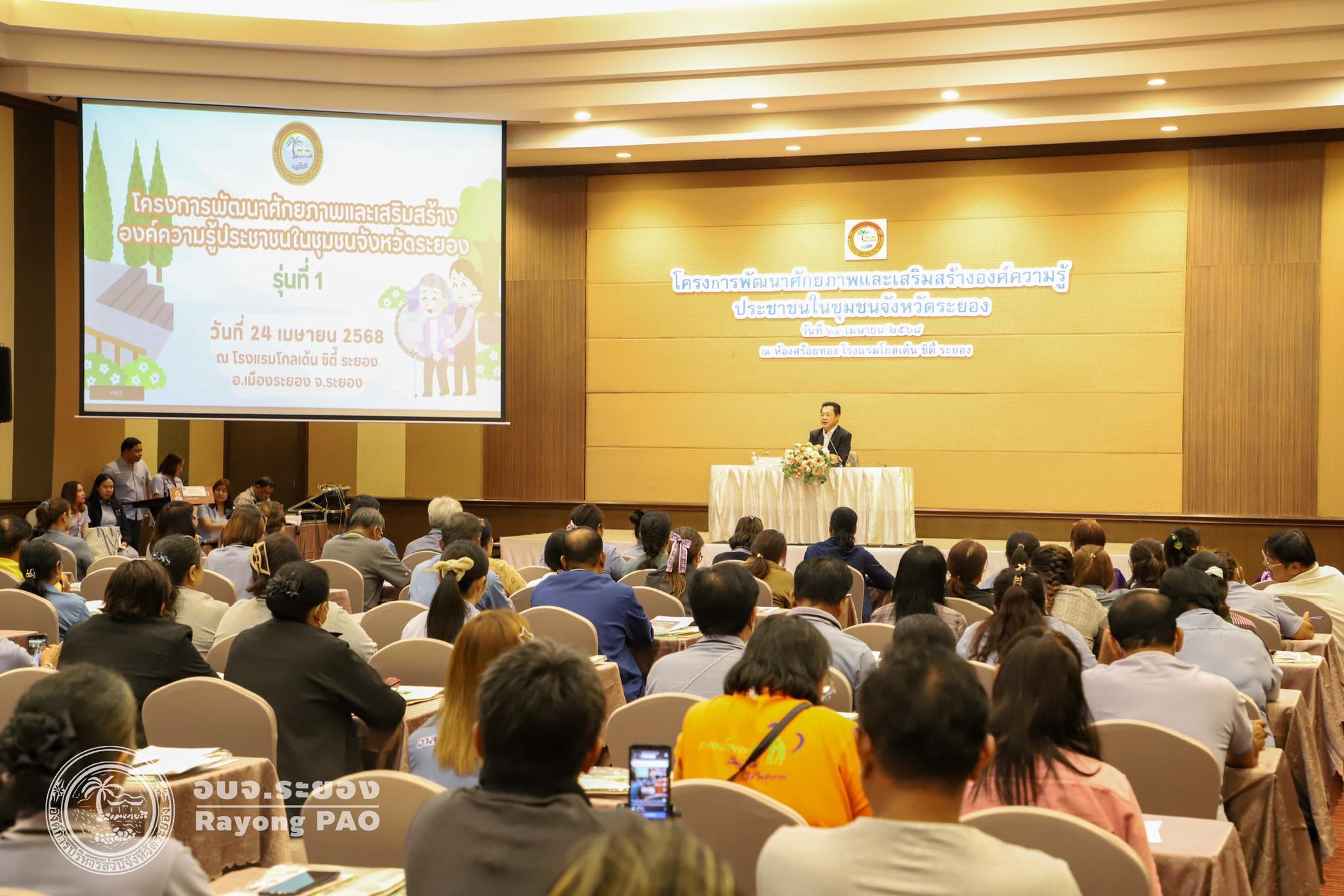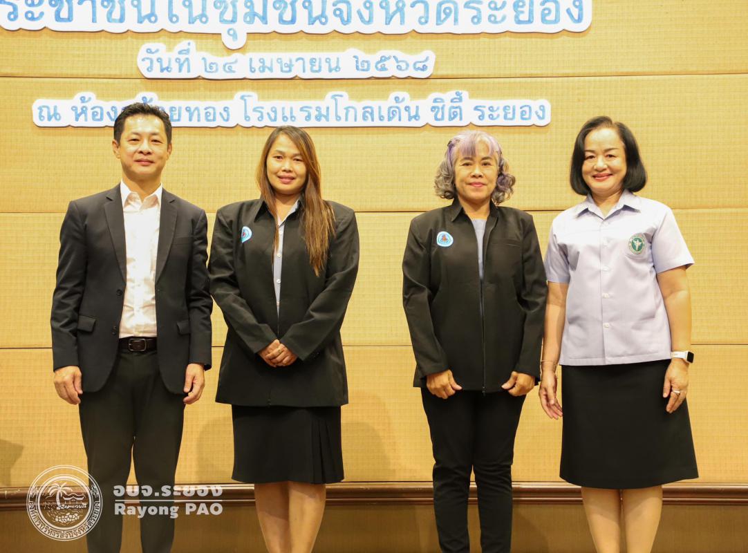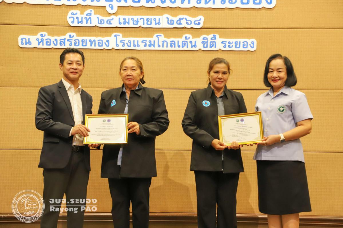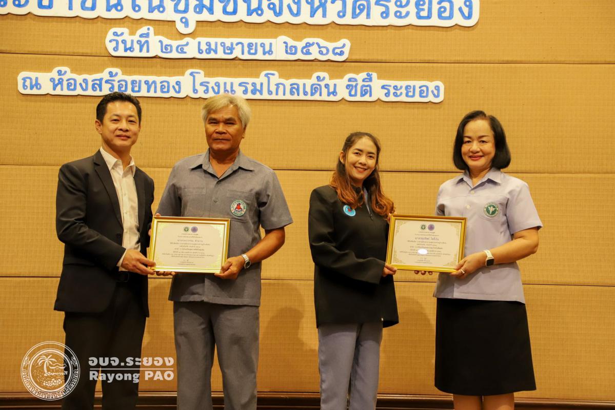 วันที่ 24 เมษายน 2568 เวลา 09.00 น. นายกิตติ เกียรติ์มนตรี รองนายกองค์การบริหารส่วนจังหวัดระยอง (1) เป็นประธานในพิธีเปิดโครงการพัฒนาศักยภาพและเสริมสร้างองค์ความรู้ประชาชนในชุมชนจังหวัดระยอง รุ่นที่ 1 โดยโครงการดังกล่าวจัดขึ้นเพื่อพัฒนาศักยภาพประชาชนให้มีองค์ความรู้และทักษะในการดูแลสุขภาพอนามัย สามารถนำไปปรับใช้ได้อย่างถูกต้องและเหมาะสม จนถึงระดับที่ดูแลสุขภาพของตนเอง ครอบครัวและชุมชน และแก้ไขปัญหาสาธารณสุขในหมู่บ้าน หรือชุมชนได้ ซึ่งกิจกรรมภายในโครงการฯได้จัดพิธีมอบประกาศนียบัตรให้กับอาสาสมัครสาธารณสุขประจำหมู่บ้านดีเด่น ระดับจังหวัด ประจำปี 2568 การบรรยายให้ความรู้ในหัวข้อ "Happy Healthy เสริมพลังสร้างสุขภาพสู่ประชาชน" และหัวข้อ "รู้ภัยเสี่ยง เลี่ยงโรคไม่ติดต่อ" โดยนายบุญโชค เกาะแก้ว ตำแหน่ง เจ้าพนักงานสาธารณสุขชำนาญงาน สำนักงานสาธารณสุขจังหวัดระยอง ณ โรงแรมโกลเด้น ซิตี้ ระยอง