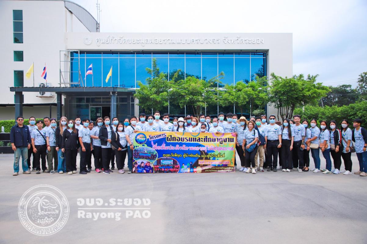 วันที่ 2 พฤษภาคม 2568 เวลา 13.00 น. นางพีรกานต์ ทองเชื้อ นายกองค์การบริหารส่วนตำบลวังพิกุล จ.พิษณุโลก นำคณะเข้าศึกษาดูงาน จำนวน 50 คน ณ ศูนย์กำจัดขยะมูลฝอยแบบครบวงจร จังหวัดระยอง โดยมีเจ้าหน้าที่จากบริษัท GPSC และเจ้าหน้าที่ของบริษัทร่วมค้าไทยไพบูลย์ ร่วมให้การต้อนรับพร้อมทั้งบรรยายเกี่ยวกับการบริหารจัดการขยะที่สามารถแปลงเป็นเชื้อเพลิง RDF ได้ พร้อมกันนี้ได้นำคณะเข้าเยี่ยมชมพื้นที่ภายในศูนย์กำจัดขยะมูลฝอยฯ และศูนย์การเรียนรู้แปลงขยะเป็นพลังงาน (Waste to Energy Learning Center)