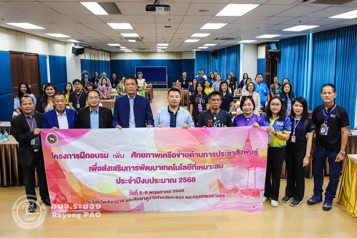 วันที่ 7 พฤษภาคม 2568 เวลา 09.00 น. นายสุรินทร์ แสงทอง ปลัดองค์การบริหารส่วนจังหวัดระยอง พร้อมด้วย นายจรัญ ความเพียร เลขานุการนายกอบจ.ระยอง, นายอรุณ วิชกิจ ผู้เชี่ยวชาญพิเศษด้านการวางแผนและวิเคราะห์นโยบาย, นายสมบัติ มุมทอง รองปลัดอบจ.ระยอง ข้าราชการ และเจ้าหน้าที่ที่เกี่ยวข้องร่วมให้การต้อนรับคณะศึกษาดูงานจากองค์การบริหารส่วนจังหวัดเชียงราย นำโดย นายนราธิป คำแก่น หัวหน้าฝ่ายวิจัยและประเมินผลกองยุทธศาสตร์และงบประมาณ องค์การบริหารจังหวัดเชียงราย และคณะ จำนวน 38 คน