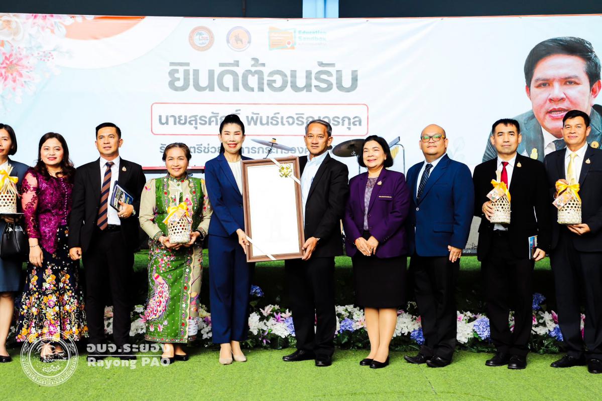 วันที่ 12 พฤษภาคม 2568 เวลา 13.00 น. นายประสานต์ พฤกษาชาติ รองนายกองค์การบริหารส่วนจังหวัดระยอง (2) พร้อมด้วย คณะผู้บริหาร สมาชิกสภาอบจ.ระยอง หัวหน้าส่วนราชการ คณะครู และเจ้าหน้าที่ที่เกี่ยวข้อง ร่วมต้อนรับคณะศึกษาดูงานการขับเคลื่อนนวัตกรรมการศึกษา อย่างพร้อมเพรียงกัน ณ โรงเรียนอนุบาลนานาชาติตากสินบ้านค่าย (วัดหวายกรอง)