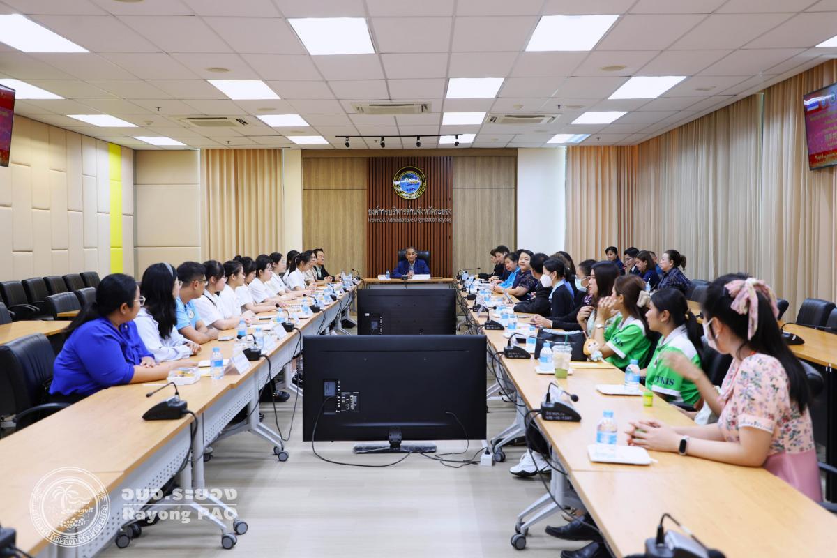 วันที่ 16 พฤษภาคม 2568 เวลา 14.00 น. นายประสานต์ พฤกษาชาติ รองนายกองค์การบริหารส่วนจังหวัดระยอง (2) เป็นประธานในพิธี พร้อมด้วย นายศุภกฤต ขจิตวิชยานุกูล ผู้ทรงคุณวุฒิเฉพาะด้านภาษาจีน คณะผู้บริหารองค์การบริหารส่วนจังหวัดระยอง ผู้บริหารสถานศึกษาในสังกัดอบจ.ระยอง และผู้ที่เกี่ยวข้องเข้าร่วมพิธีต้อนรับนักศึกษาฝึกสอนชาวจีนโครงการความร่วมมือแลกเปลี่ยนภาษาและวัฒนธรรมจีน (นักศึกษาฝึกสอนชาวจีน) ประจำปีการศึกษา 2568 ศูนย์ภาษาตากสิน จังหวัดระยอง โดยพร้อมเพรียงกัน เพื่อพัฒนาคุณภาพแลกเปลี่ยนเรียนรู้ด้านภาษาและวัฒนธรรมจีน หาแนวทางการแก้ไขปัญหาการขาดแคลนบุคลากรและพัฒนาการจัดการเรียนการสอนภาษาจีนให้มีประสิทธิภาพ ณ ห้องประชุม 2 ชั้น 3 อบจ.ระยอง