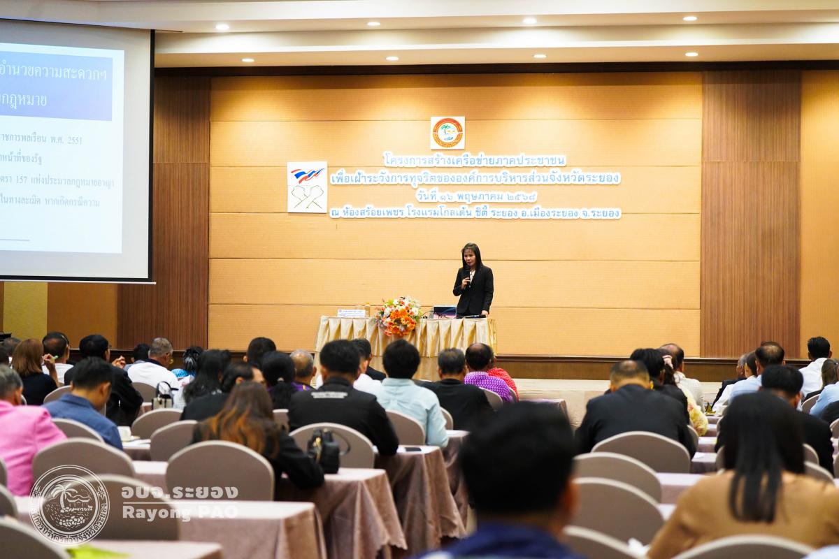 วันที่ 16 พฤษภาคม 2568 เวลา 09.30 น. นายกิตติ เกียรติ์มนตรี รองนายกองค์การบริหารส่วนจังหวัดระยอง (1) เป็นประธานเปิดโครงการสร้างเครือข่ายภาคประชาชนเพื่อเฝ้าระวังการทุจริตขององค์การบริหารส่วนจังหวัดระยอง โดยมี นายสุรินทร์ แสงทอง ปลัดองค์การบริหารส่วนจังหวัดระยอง เป็นผู้กล่าววัตถุประสงค์ของการจัดโครงการฯ พร้อมด้วย คณะผู้บริหาร สมาชิกสภาองค์การบริหารส่วนจังหวัดระยอง ผู้อำนวยการกอง และผู้ที่ที่เกี่ยวข้องเข้าร่วมพิธีเปิดโครงการฯ โดยพร้อมเพรียงกัน ณ โรงแรมโกลเด้น ซิตี้ ระยอง