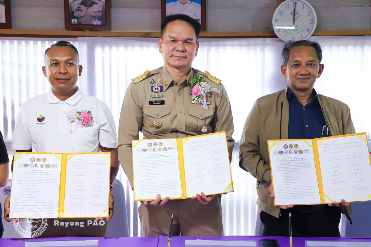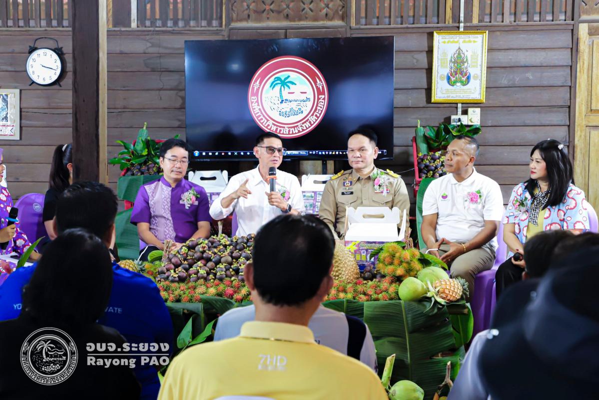 วันที่ 19 พฤษภาคม 2568 เวลา 15.00 น. นายปิยะ ปิตุเตชะ นายกองค์การบริหารส่วนจังหวัดระยอง เป็นประธานงานแถลงข่าว และร่วมลงนามบันทึกความร่วมมือ (MOU) การส่งเสริมเศรษฐกิจท่องเที่ยวเชิงเกษตรภายใต้ “โครงการจัดงานมังคุดหวานของดีอำเภอบ้านค่าย ประจำปีงบประมาณ พ.ศ. 2568” พร้อมด้วย นายประสานต์ พฤกษาชาติ รองนายกองค์การบริหารส่วนจังหวัดระยอง (2), นายวิจิตร พาพลงาม นายอำเภอบ้านค่าย, นายธนพล ศิริพล นายกองค์การบริหารส่วนตำบลหนองตะพาน, นายวัชรพล สารสอน ผอ.ททท.สำนักงานระยอง และนางสริญทิพญ ทัพมงคลทรัพย์ ประธานสภาอุตสาหกรรมท่องเที่ยวจังหวัดระยอง ผู้แทนจากหน่วยงานภาครัฐ ภาคเอกชน และผู้ที่เกี่ยวข้องเข้าร่วมงานแถลงข่าวฯ โดยพร้อมเพรียงกัน