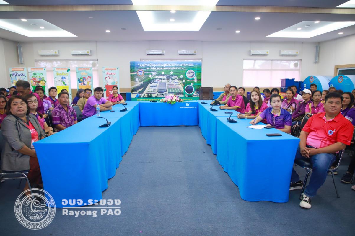วันที่ 23 พฤษภาคม 2568 เวลา 09.00 น. องค์การบริหารส่วนตำบลบัวแดง จ.ร้อยเอ็ด และองค์การบริหารส่วนตำบลโคกไทย จ.ปราจีนบุรี นำคณะเจ้าหน้าที่และแกนนำด้านสาธารณสุขและสิ่งแวดล้อม เข้าศึกษาดูงาน ณ ศูนย์กำจัดขยะมูลฝอยแบบครบวงจร จังหวัดระยอง โดยมีเจ้าหน้าที่จากกองสาธารณสุข อบจ.ระยอง และเจ้าหน้าที่จากบริษัท GPSC และเจ้าหน้าที่ของบริษัทไทยไพบูลย์ฯ ร่วมให้การต้อนรับพร้อมทั้งบรรยายให้ความรู้เกี่ยวกับการบริหารจัดการขยะที่สามารถแปลงขยะเป็นเชื้อเพลิง RDF พร้อมกันนี้ได้นำคณะเข้าเยี่ยมชมพื้นที่ภายในศูนย์กำจัดขยะมูลฝอยฯ และศูนย์การเรียนรู้แปลงขยะเป็นพลังงาน (Waste to Energy Learning Center)