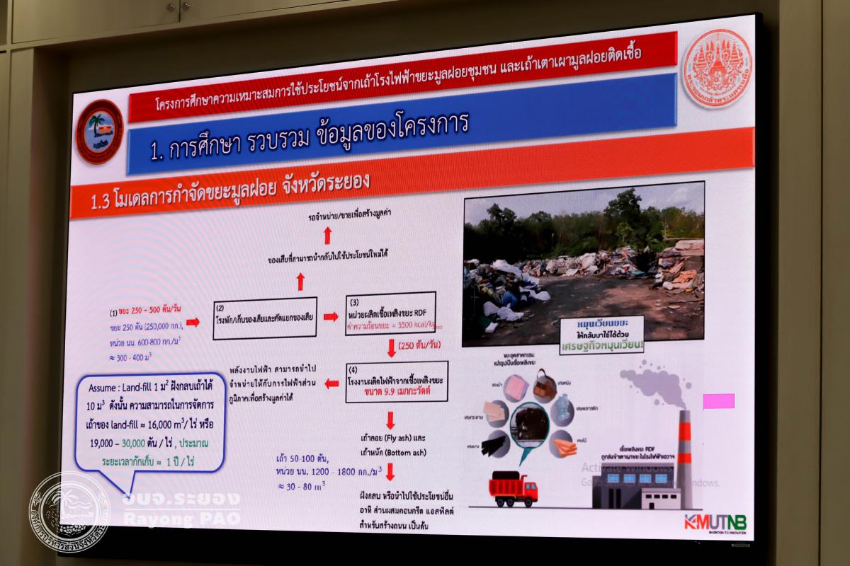 ซึ่งการจัดอบรมมีวัตถุประสงค์เพื่อเผยแพร่ความรู้เกี่ยวกับประโยชน์จากเถ้า และสาธิตวิธีการสร้างผลิตภัณฑ์จากเถ้าโรงไฟฟ้าขยะมูลฝอยชุมชนขององค์การบริหารส่วนจังหวัดระยองให้กับผู้ที่สนใจ ซึ่งสอดคล้องกับเป้าหมายโครงการที่ต้องการให้ชุมชนมีรายได้จากการจำหน่ายผลิตภัณฑ์จากเถ้าและส่งเสริมแนวคิดการจัดการของเสียสู่การสร้างมูลค่า ช่วยลดภาระการกำจัด และสร้างปัญหาต่อสิ่งแวดล้อม ขณะเดียวกันก็เป็นการสร้างโอกาสทางเศรษฐกิจใหม่ๆให้กับชุมขนในจังหวัดระยอง ณ มหาวิทยาลัยเทคโนโลยีพระจอมเกล้าพระนครเหนือ