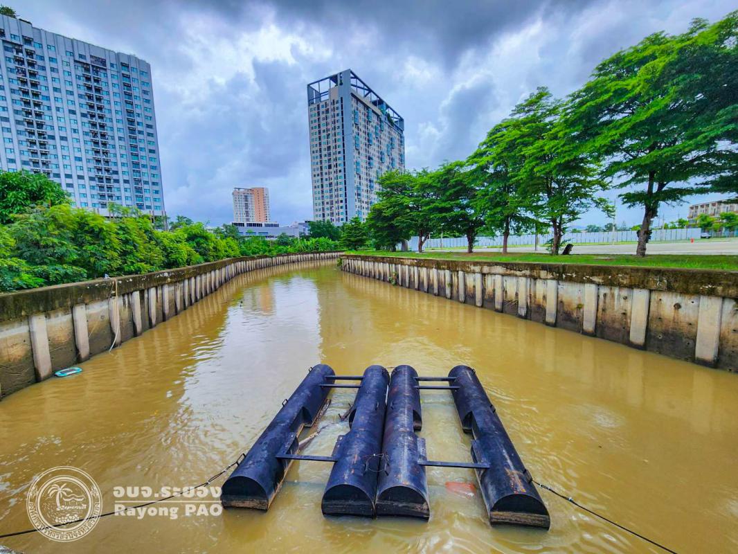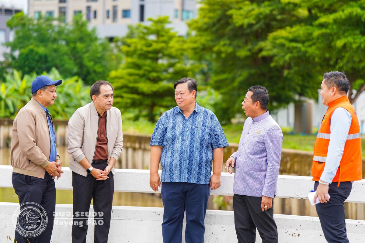 อบจ.ระยองร่วมลงพื้นที่ติดตามสถานการณ์น้ำคลองทับมา บริเวณสะพานหลังศูนย์การค้าเซ็นทรัลระยอง และสะพานแตง