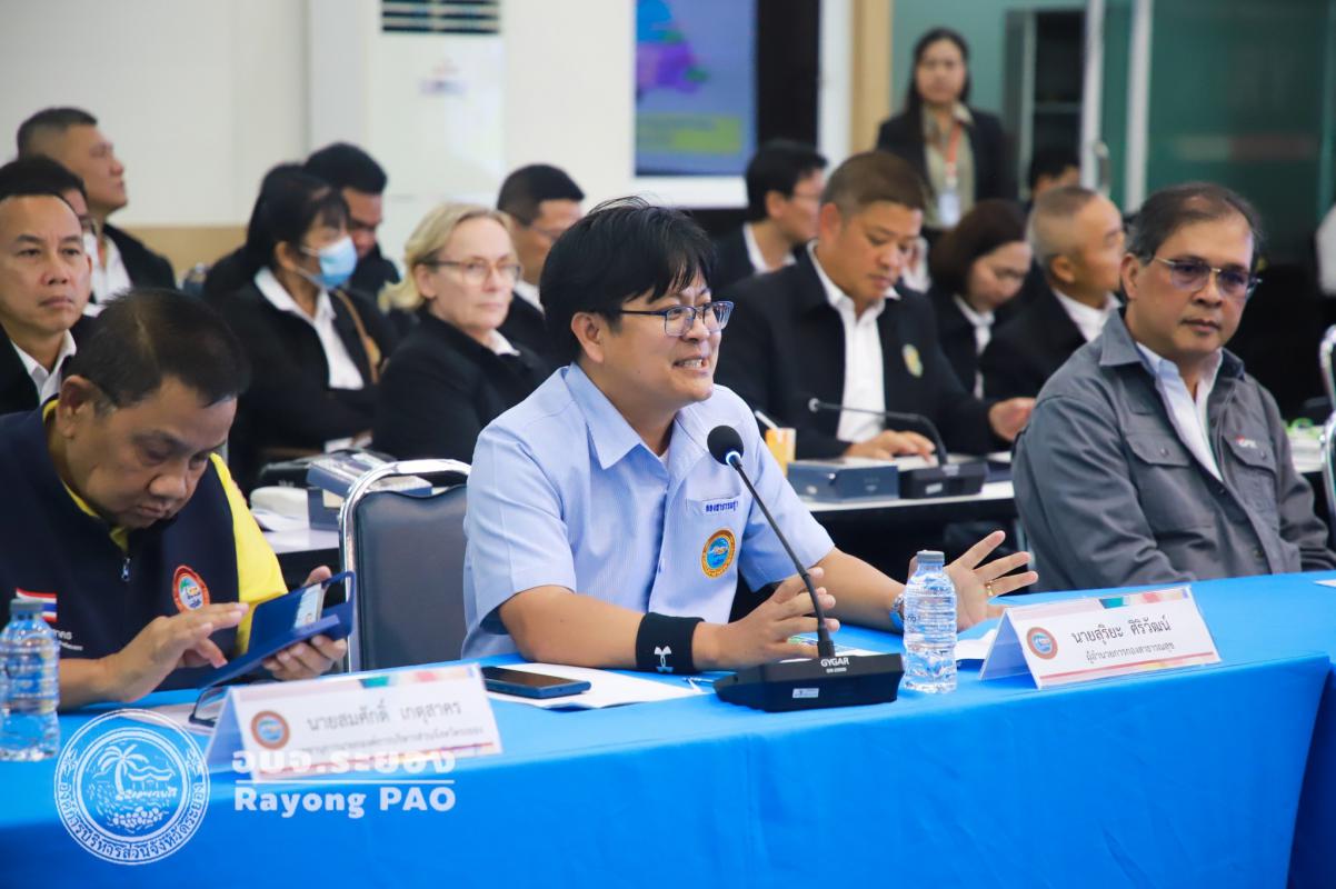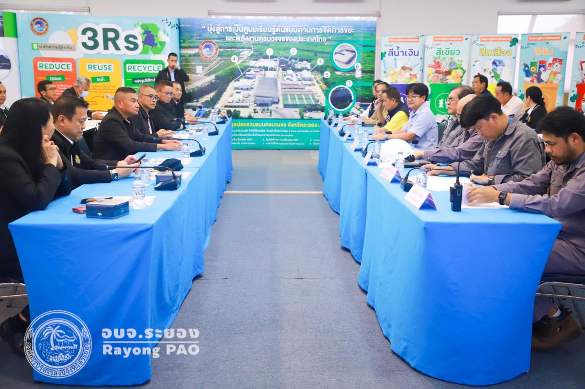 วันที่ 29 พฤษภาคม 2568 เวลา 13.00 น. นายปิยะ ปิตุเตชะ นายกองค์การบริการส่วนจังหวัดระยอง พร้อมด้วยคณะผู้บริหาร ให้การต้อนรับ พลโททักษิณ สิริสิงห ผอ.วิทยาลัยป้องกันราชอาณาจักร นำคณะนักศึกษาหลักสูตรการป้องกันราชอาณาจักร (วปอ.) รุ่นที่ 87 เข้าศึกษาดูงาน ณ ศูนย์กำจัดขยะมูลฝอยแบบครบวงจร จังหวัดระยอง โดยมีคุณบุญสรวง เสนีย์วงศ์ ณ อยุธยา ผจก.โรงไฟฟ้า RDF พร้อมคณะเจ้าหน้าที่จากกองสาธารณสุข อบจ.ระยอง เจ้าหน้าที่จากบริษัท GPSC และเจ้าหน้าที่บริษัทไทยไพบูลย์ฯ ร่วมให้การต้อนรับพร้อมทั้งบรรยายเกี่ยวกับการบริหารจัดการขยะที่สามารถแปลงเป็นเชื้อเพลิง RDF ได้ พร้อมกันนี้ได้นำคณะเข้าเยี่ยมชมพื้นที่ภายในศูนย์กำจัดขยะมูลฝอยฯ และศูนย์การเรียนรู้แปลงขยะเป็นพลังงาน (Waste to Energy Learning Center)