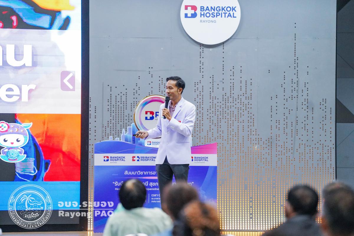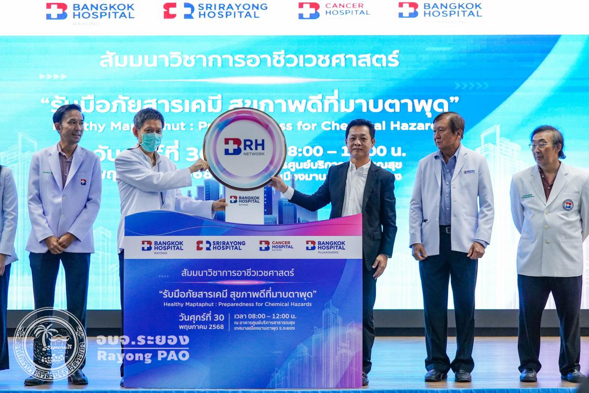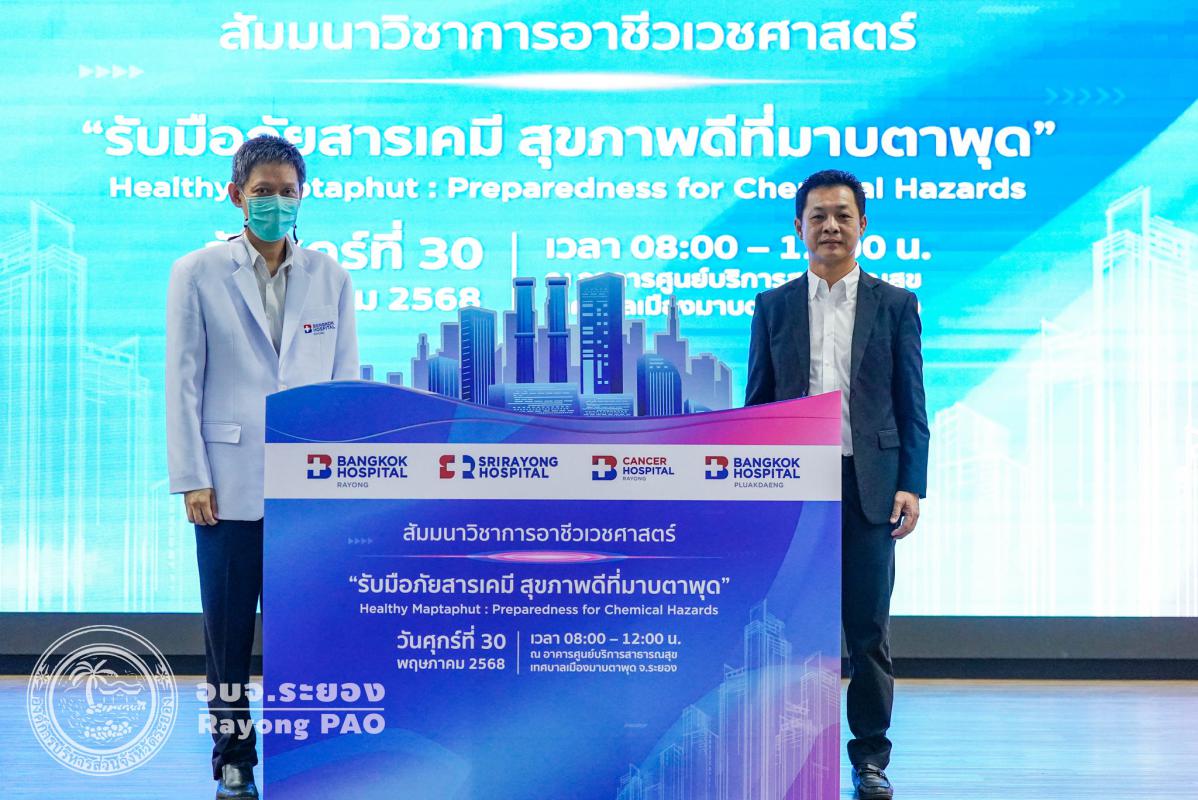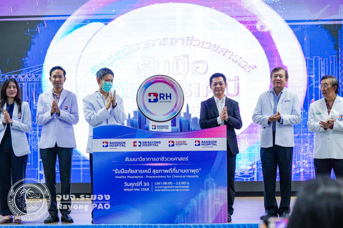 วันที่ 30 พฤษภาคม 2568 นายกิตติ เกียรติ์มนตรี รองนายกองค์การบริหารส่วนจังหวัดระยอง (1) เข้าร่วมพิธีเปิดงานสัมมนาวิชาการงานอาชีวเวชศาสตร์ “รับมือภัยสารเคมี สุขภาพดีที่มาบตาพุด” โดยมี นายแพทย์วสุ ริจิรานุวัตร ผู้อำนวยการโรงพยาบาลกรุงเทพระยอง เป็นประธานกล่าวเปิดงานฯ และผู้ที่เกี่ยวข้องร่วมพิธีเปิดงานสัมมนาฯ โดยพร้อมเพรียงกัน ซึ่งงานสัมมนาในครั้งนี้จัดขึ้นเพื่อเป็นการเสริมสร้างองค์ความรู้และการเตรียมความพร้อมในการรับมือกับสถานการณ์ฉุกเฉินจากสารเคมี แลกเปลี่ยนองค์ความรู้ระหว่างภาคอุตสาหกรรม หน่วยงานราชการ และบุคลากรทางการแพทย์ และส่งเสริมความร่วมมือในการดูแลสุขภาพชุมชนอย่างยั่งยืน ณ อาคารศูนย์บริการสาธารณสุข เทศบาลเมืองมาบตาพุด จังหวัดระยอง