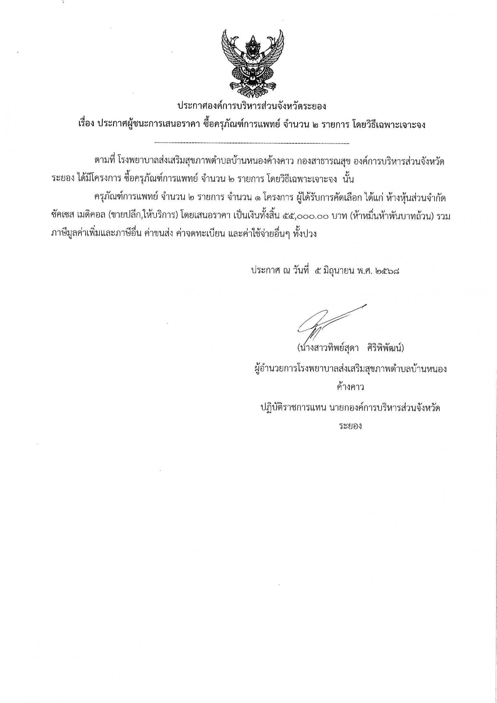 ประกาศผู้ชนะการเสนอราคา ซื้อครุภัณฑ์การแพทย์ จำนวน 2 รายการ โดยวิธีเฉพาะเจาะจง