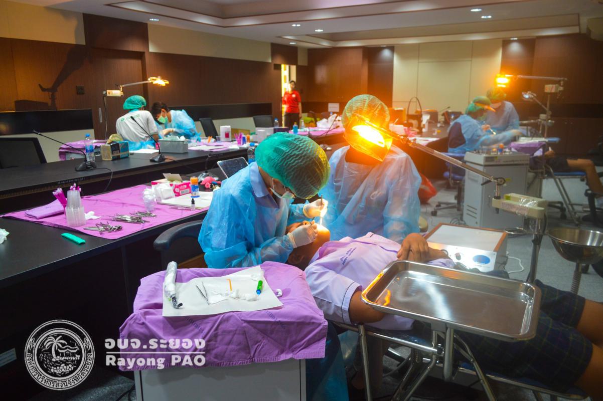 กองสาธารณสุข งานส่งเสริมสุขภาพ ฝ่ายส่งเสริมสาธารณสุข ร่วมกับโรงพยาบาลระยอง พร้อมด้วยโรงพยาบาลส่งเสริมสุขภาพตำบลในสังกัดองค์การบริหารส่วนจังหวัดระยอง และเทศบาลตำบลเชิงเนิน จัดกิจกรรมเคลือบหลุมร่องฟันให้กับเด็กนักเรียนโรงเรียนอนุบาลนานาชาติตากสินระยอง ในระหว่างวันที่ 6 - 20 มิถุนายน 2568 สำหรับนักเรียนชั้นประถมศึกษาปีที่ 1 และชั้นประถมศึกษาปีที่ 6 จำนวน 696 คน เพื่อให้นักเรียนโรงเรียนอนุบาลนานาชาติตากสินระยองได้รับการป้องกันการเกิดโรคทางทันตกรรมและส่งเสริมความรู้ด้านการดูแลสุขภาพช่องปาก ณ ห้องประชุมชั้น 1 อาคาร 5 โรงเรียนอนุบาลนานาชาติตากสินระยอง โดยมียูนิตทันตกรรมเคลื่อนที่ จำนวน 7 ยูนิต และรถทันตกรรมเคลื่อนที่ให้บริการ